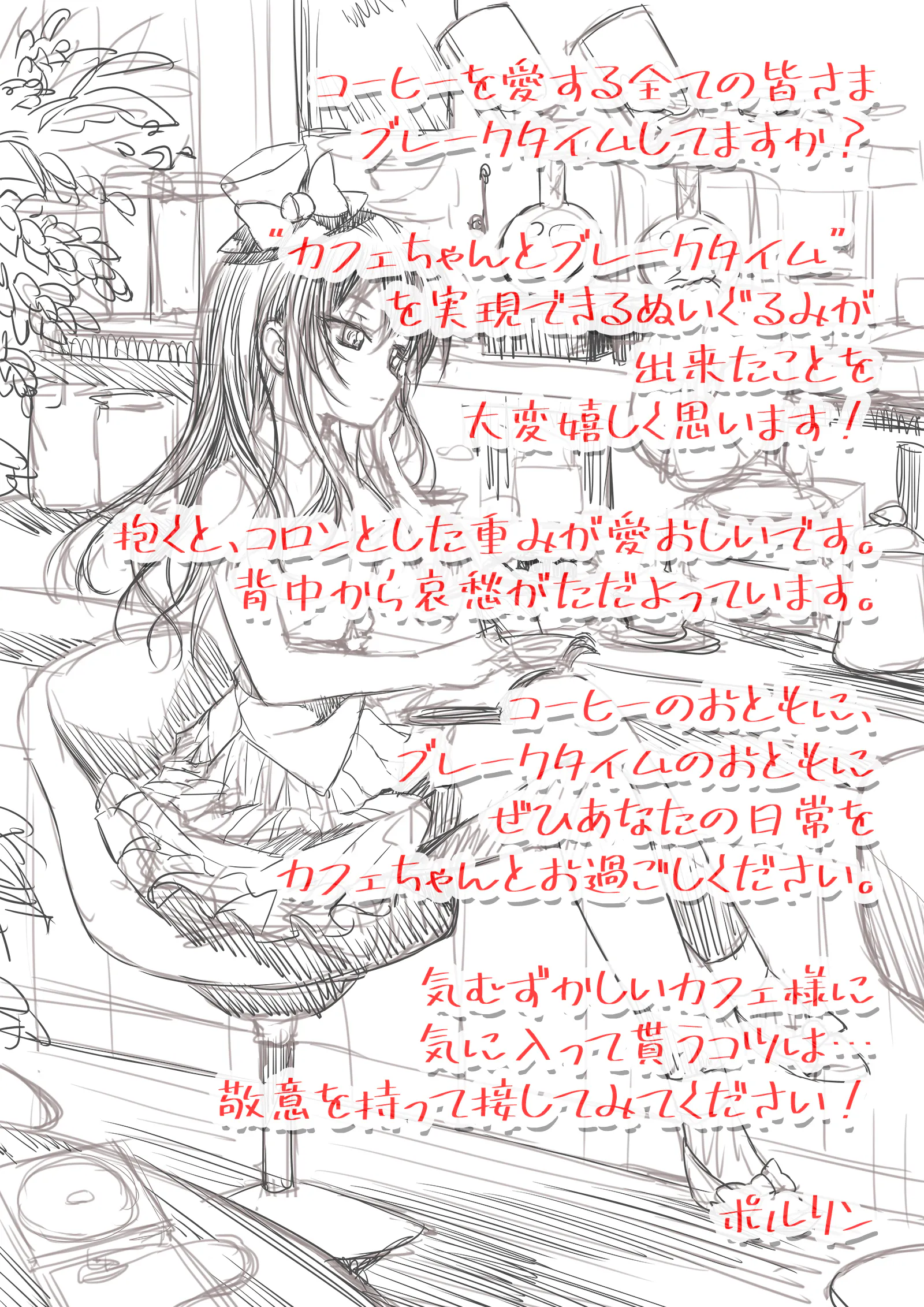 ポルリンが描く「カフェちゃん」がぬいぐるみ化に挑戦します!