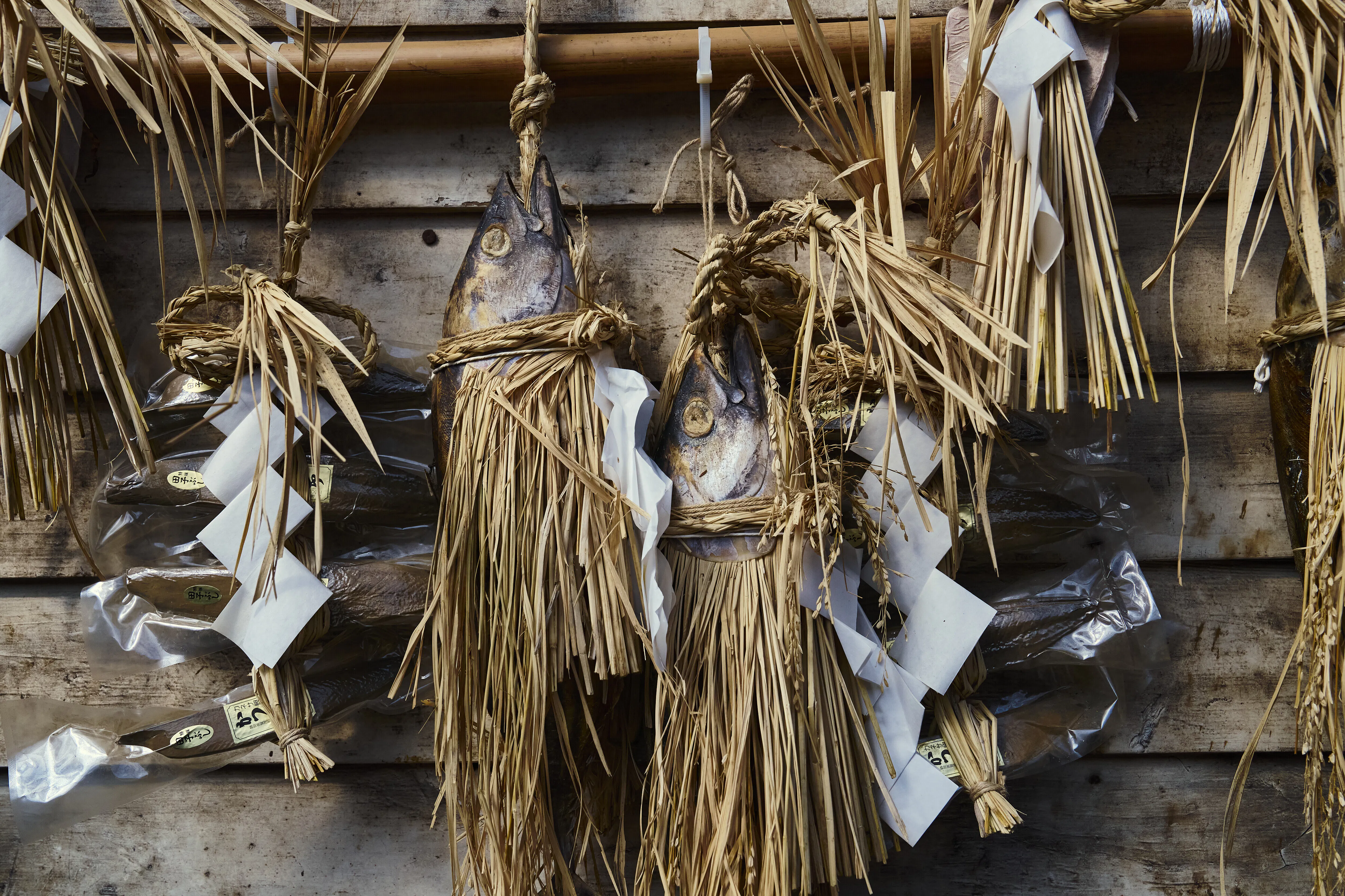 今も昔もすべて手作りで、内臓を取り除き下処理した鰹をまるごと塩に2週間漬け込んでから、西伊豆特有の冬の西風に3週間ほど当てて水分を抜いて乾燥・熟成させれば完成です。