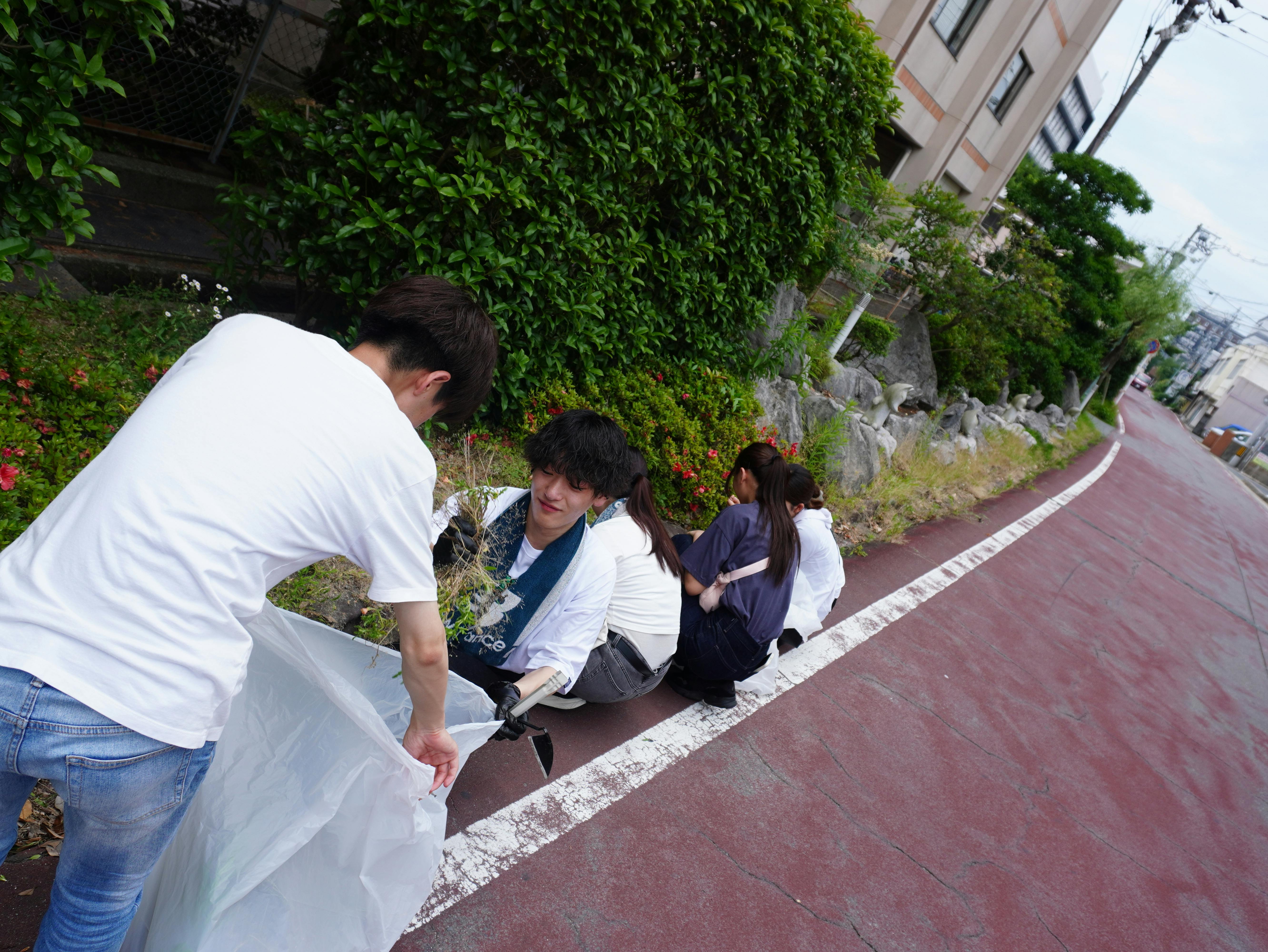 山口県内の学生が16名集まり、湯田温泉こんこんパーク周辺の清掃活動を実施。
