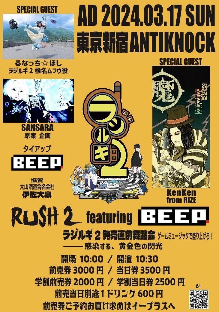 「RUSH」にてCM協賛していただきましたゲーム制作会社BEEP様より企画力を買われBEEP完全タイアップの元『RUSH2』開催。