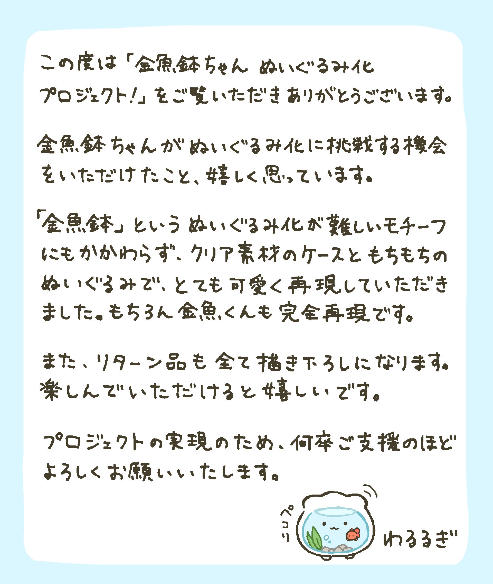 わるるぎが描く「金魚鉢ちゃん」がぬいぐるみ化に挑戦します!