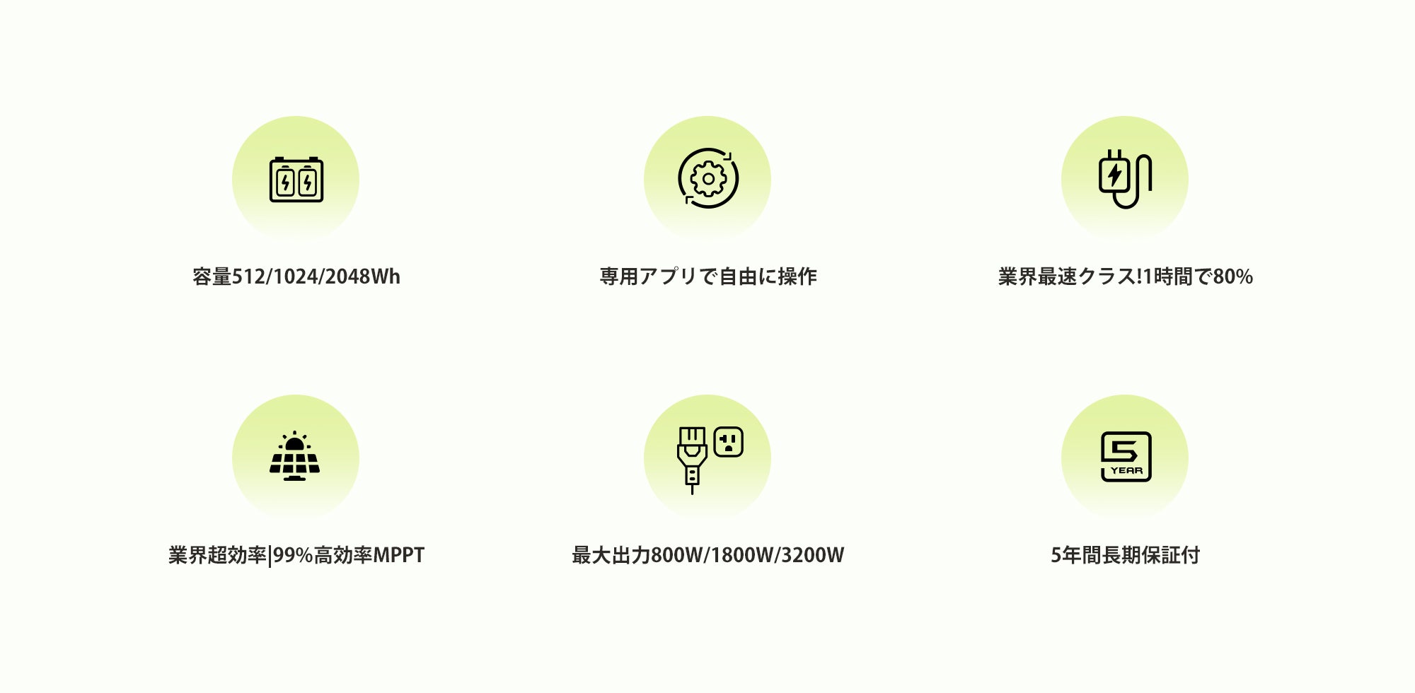 → 1日1回使用で10年間稼動可能;→ サイクル後も80%容量維持