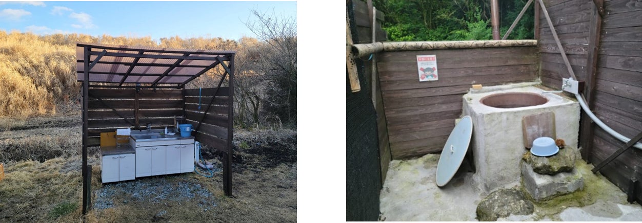 昨年6月から管理棟を借りることが出来るようになり、今までお客様には汲み取り式の簡易トイレをご利用いただいていましたが、管理棟の水洗トイレの使用できるようになり快適なトイレ環境を提供できるようになりました。