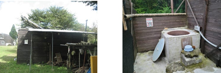 この五右衛門風呂の釜も太陽熱温水器もスタッフの実家から持ってきて設置したリユース設備となります。設置工事もすべて私たちで行いました。五右衛門風呂は珍しさも手伝って人気があるのですが、曇りの日など太陽熱温水器の湯量・湯温が不足し、お客様に満足いただけるまでには至っていません。せっかくの五右衛門風呂の施設なので快適なお風呂環境を提供したく、温水器の給湯設備の設置および、それに伴う施設の補修工事を計画しています。