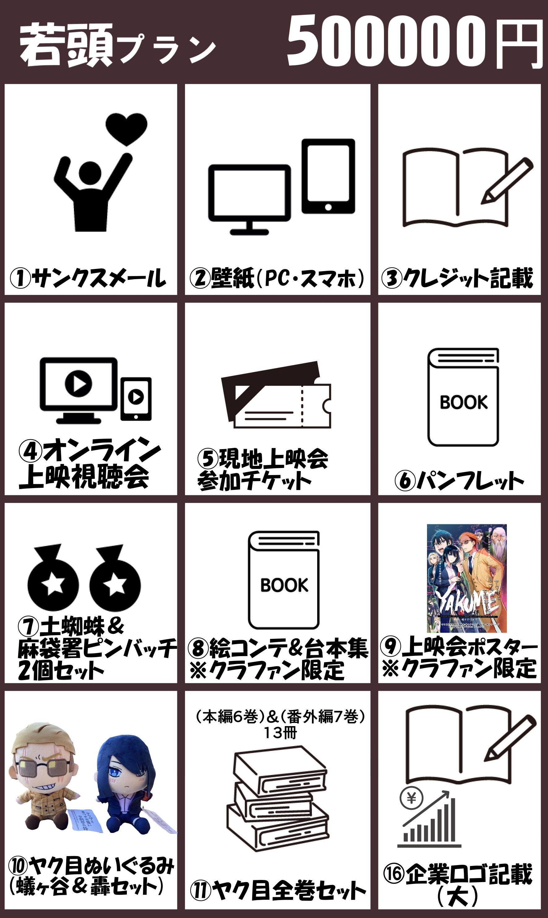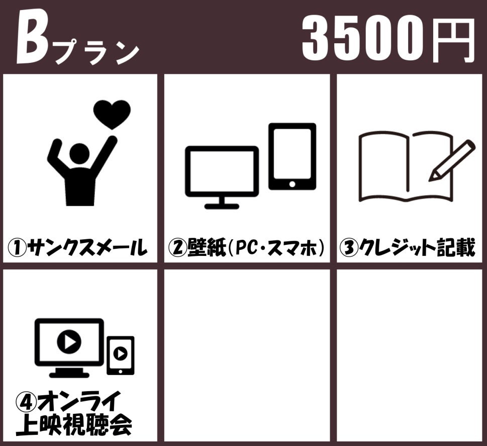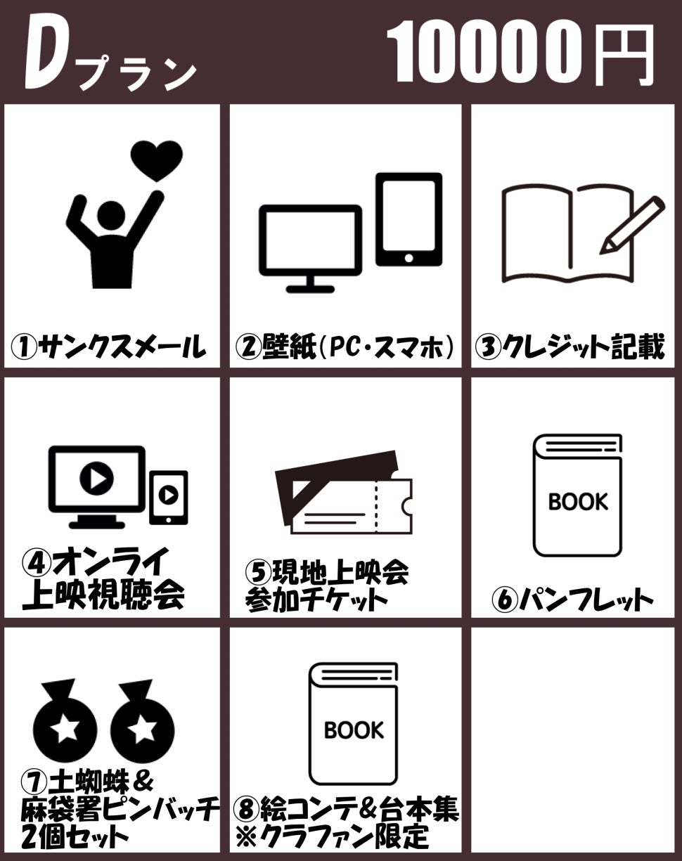 ・全リターンに「お名前のクレジット」がございます。備考欄(リターンに関するご希望)に掲載希望のお名前をご記入ください。
