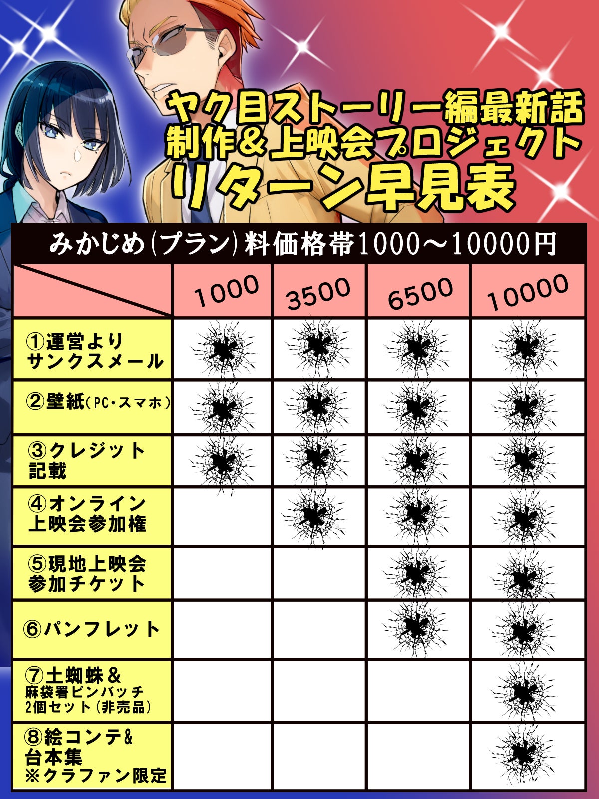 「ヤクザと目つきの悪い女刑事の話YouTubeアニメストーリー編4話」の制作資金を調達して映像化そして、上映会場を貸し切って上映会を開催するプロジェクトになるわ!
