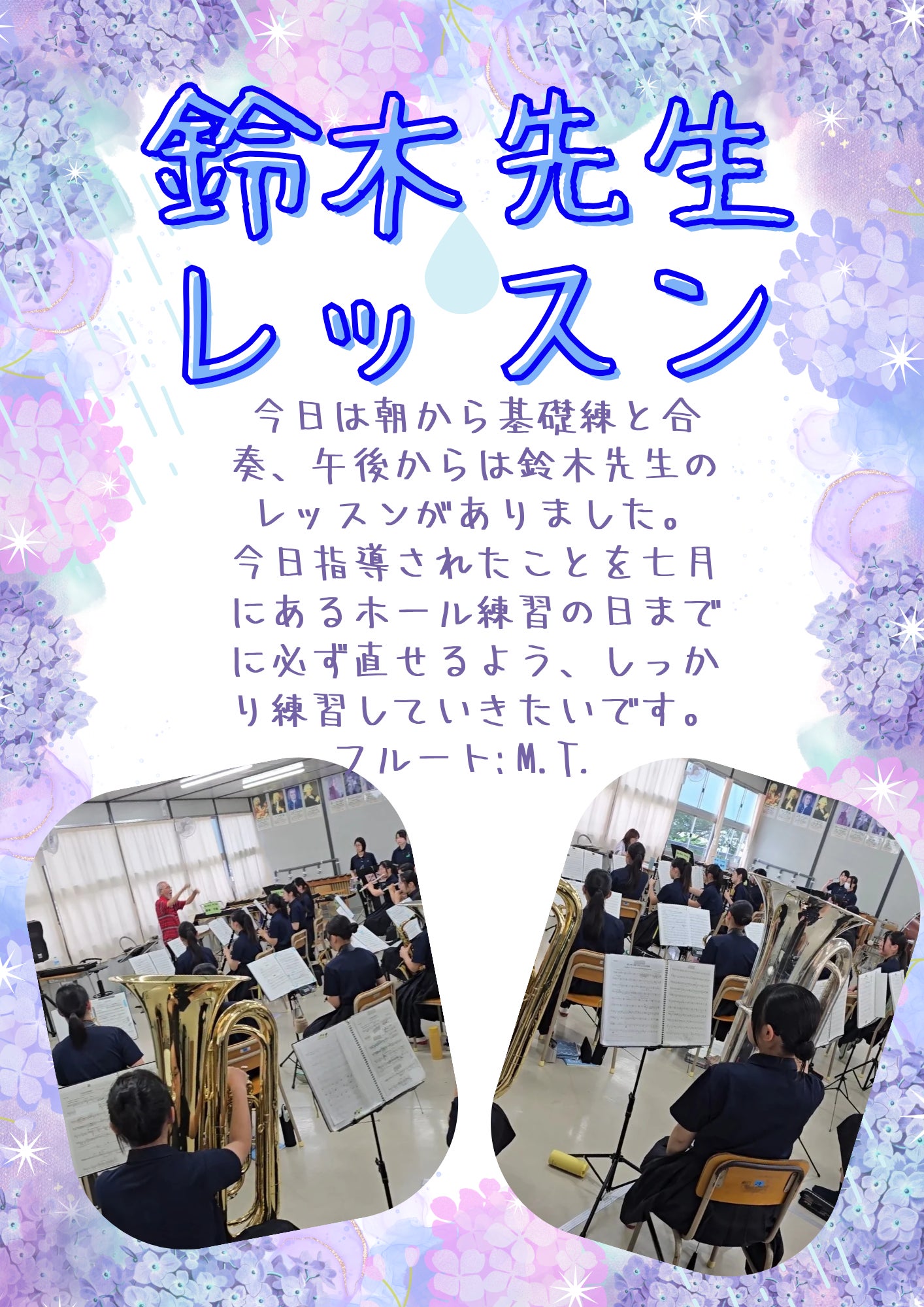 最近、鈴木先生から特別なレッスンを受けることができました。先生のご指導で、部員たちが技術をさらに磨き、音楽への理解も深まりました。部員一人ひとりが一生懸命練習しているので、これからの演奏にぜひご期待ください!
