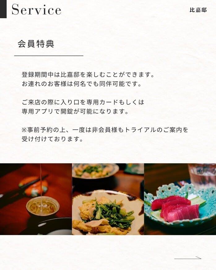 比嘉邸では会員制という形式を採用することで、一人ひとりのお客様とじっくり向き合いながら、より丁寧なおもてなしを実現できると考えています。