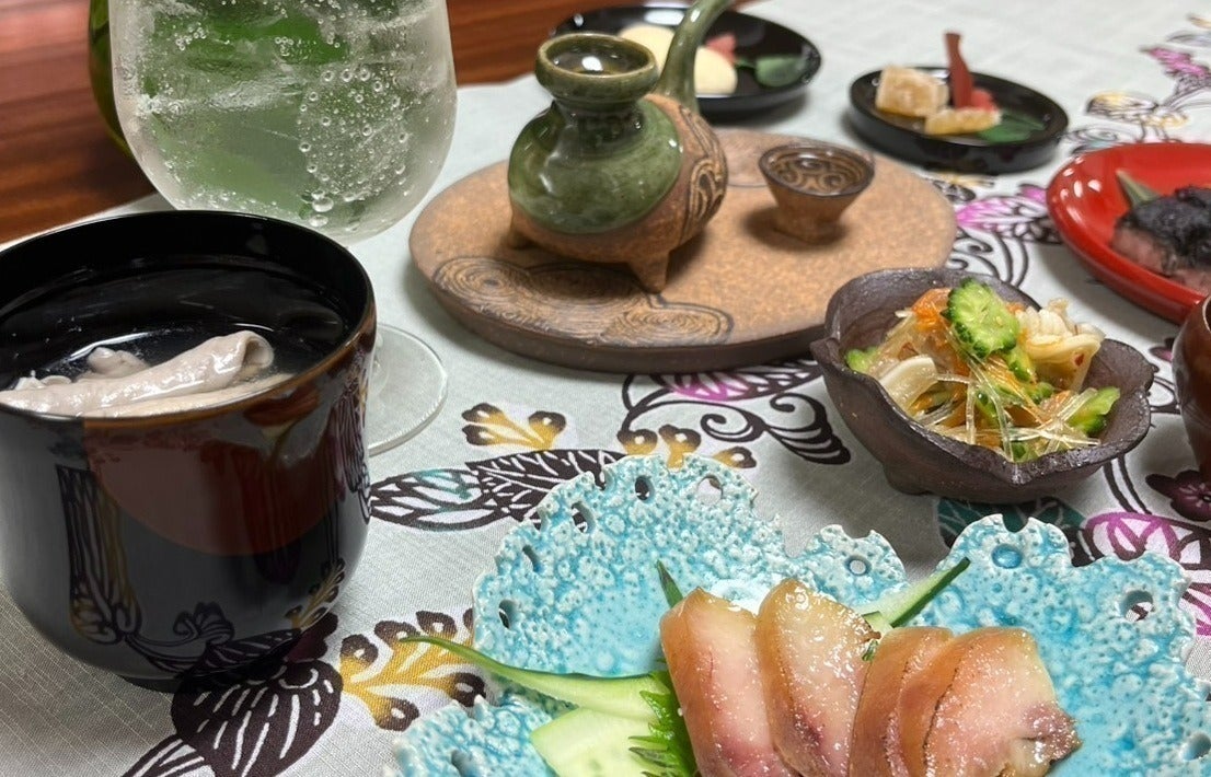 沖縄県民も食する機会の少ない宮廷料理の「ミヌダル」や「ドゥルワカシー」も楽しむことができますが、その言葉の意味や使われている食材を紐解くことでこの土地が歩んだ物語を想像していただけるよう言葉を紡ぎます。