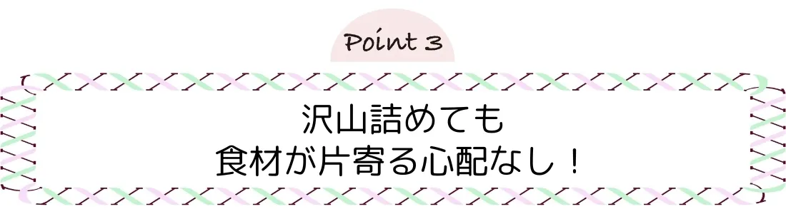 惣菜が片寄ったり卵が割れる心配もなくなります。