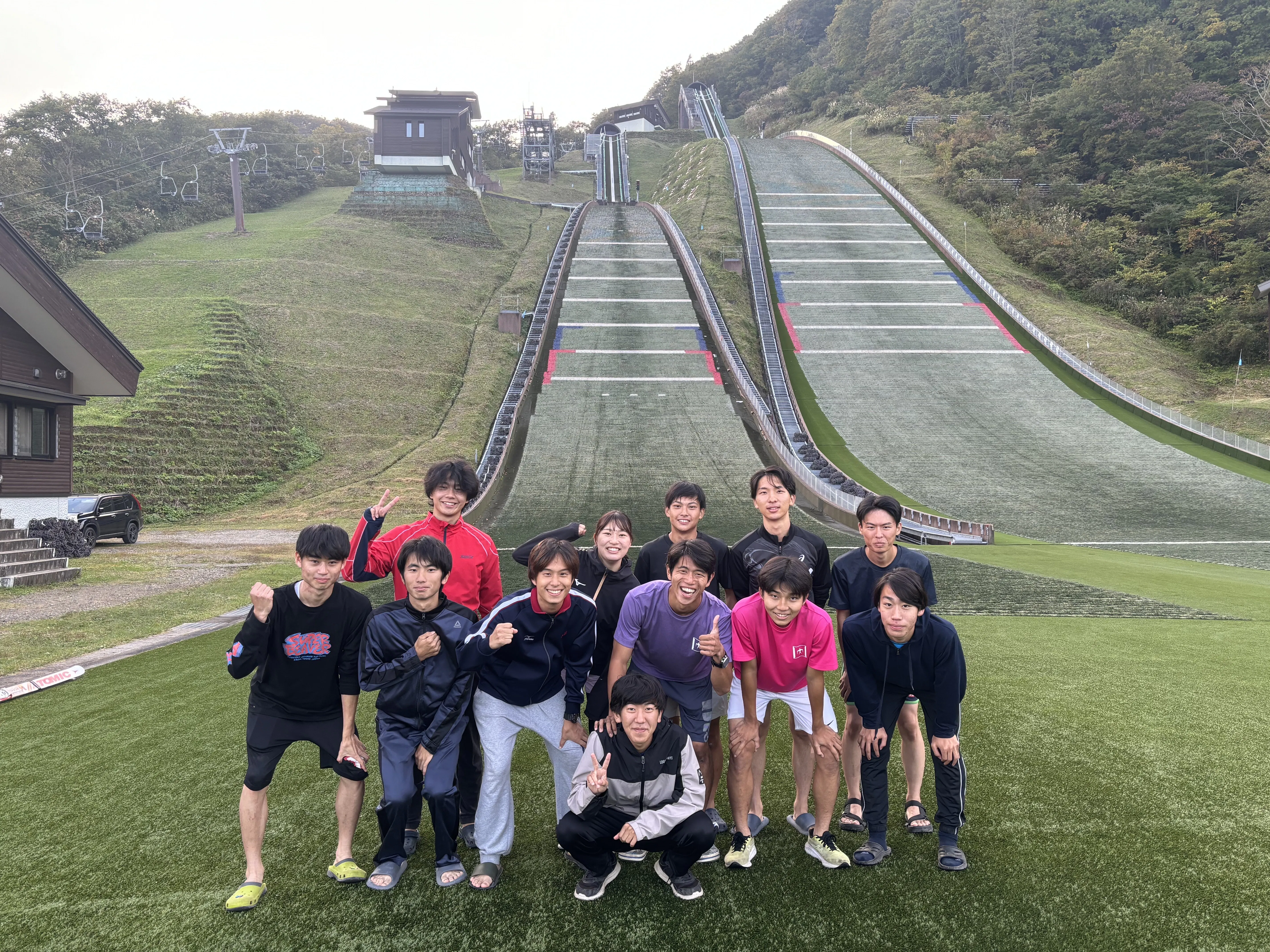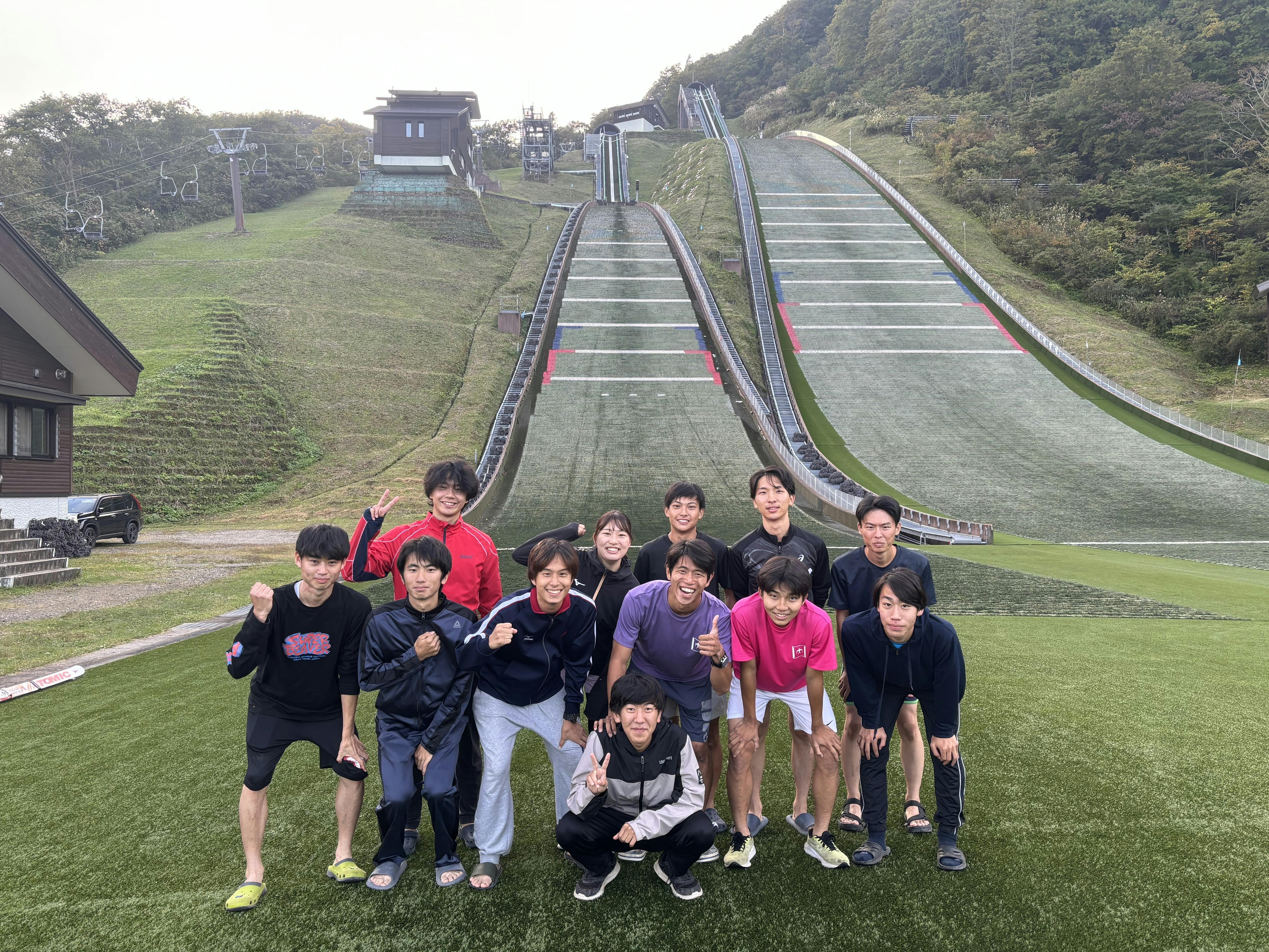 夏の期間には、飯山シャンツェや赤倉シャンツェでジャンプトレーニングを行っております。2024年シーズンは週末を利用して約10回サマー合宿を行いました。ジャンプコーチのご指導のおかげで、一人ひとり大きく成長することができています。また、他大の人と一緒に練習するためいい刺激を受けられます。