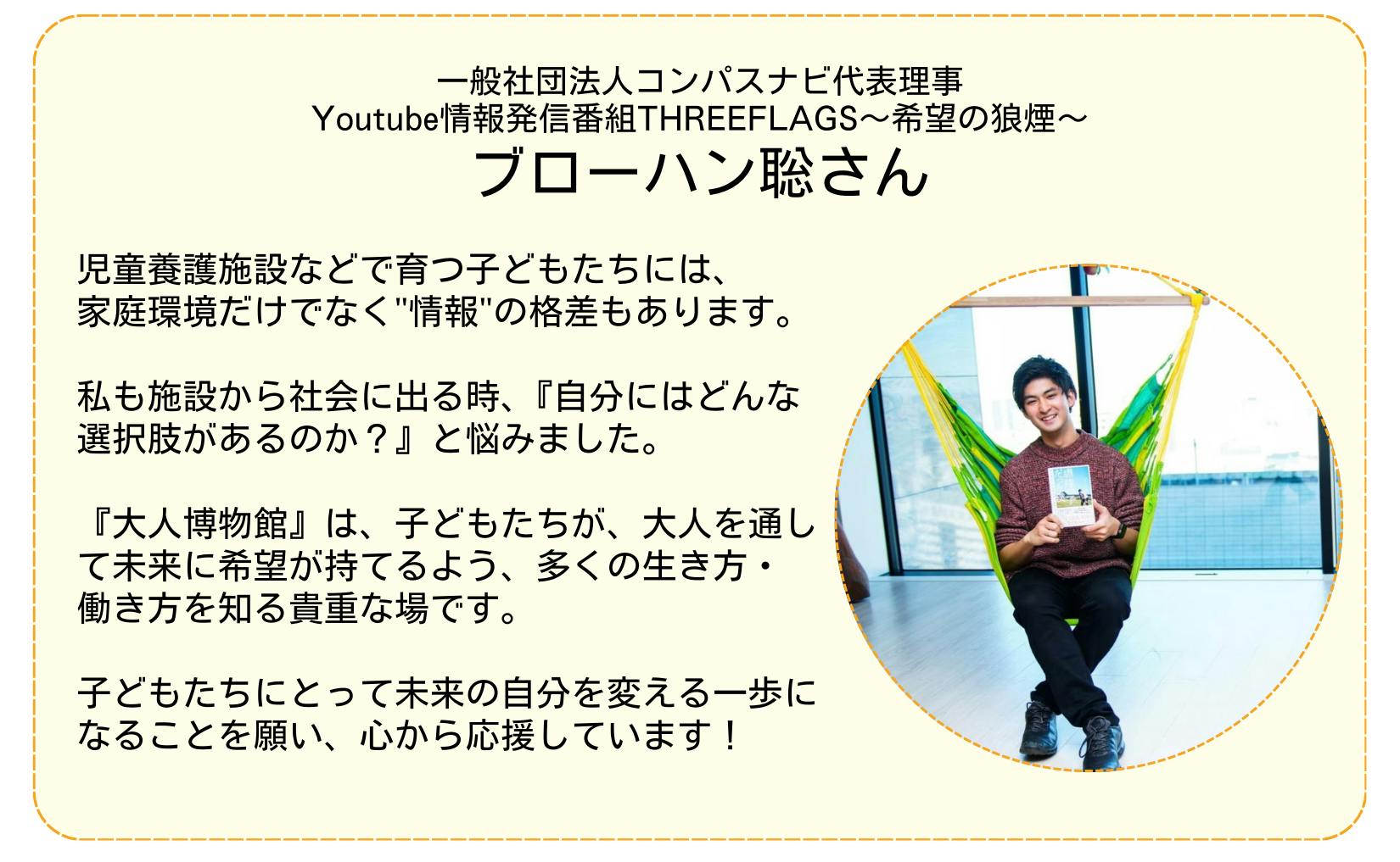 その思いが、「自分や兄と同じ苦しさを味わう人を少しでも減らしたい」という想いに変わり、立ち上げたのが「大人博物館」と活動の母体となる「一般社団法人いまからつくる」です。