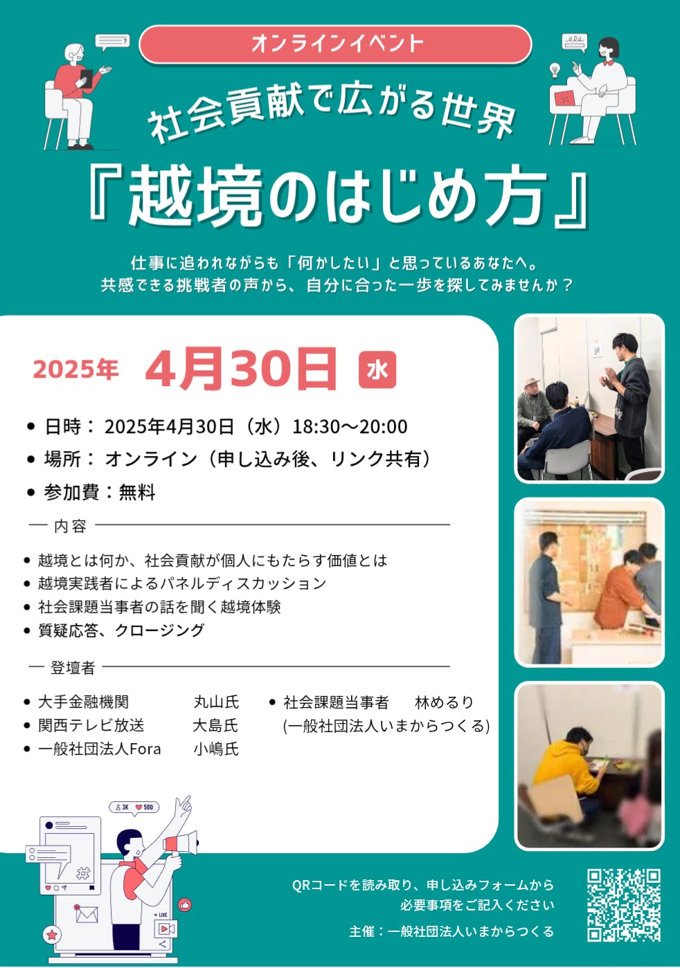企業に務めながら、社会貢献活動をしている方々がオンラインで対談をします。