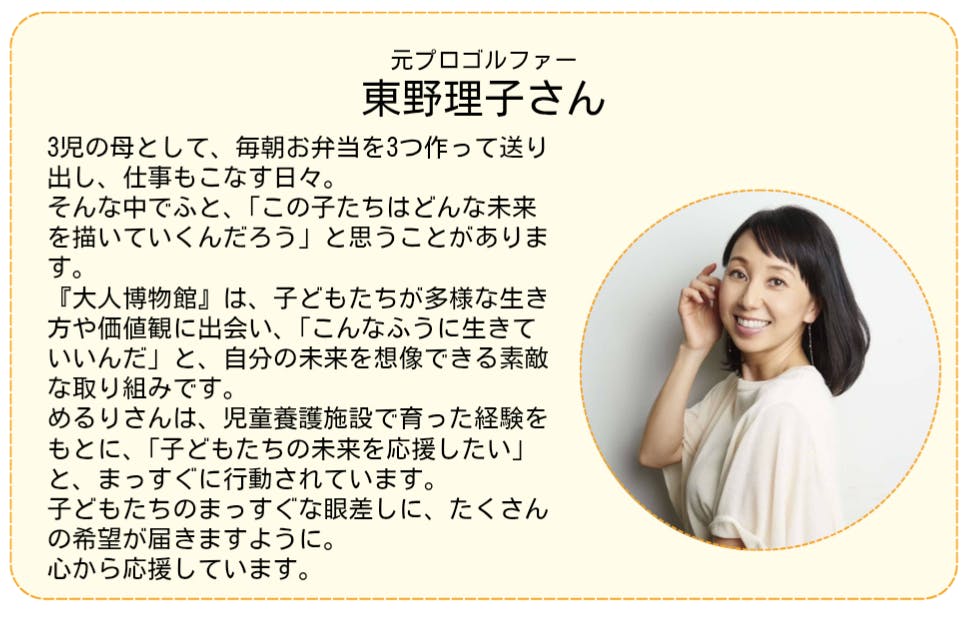 元プロゴルファーの東野理子さんより、応援メッセージを頂きました!