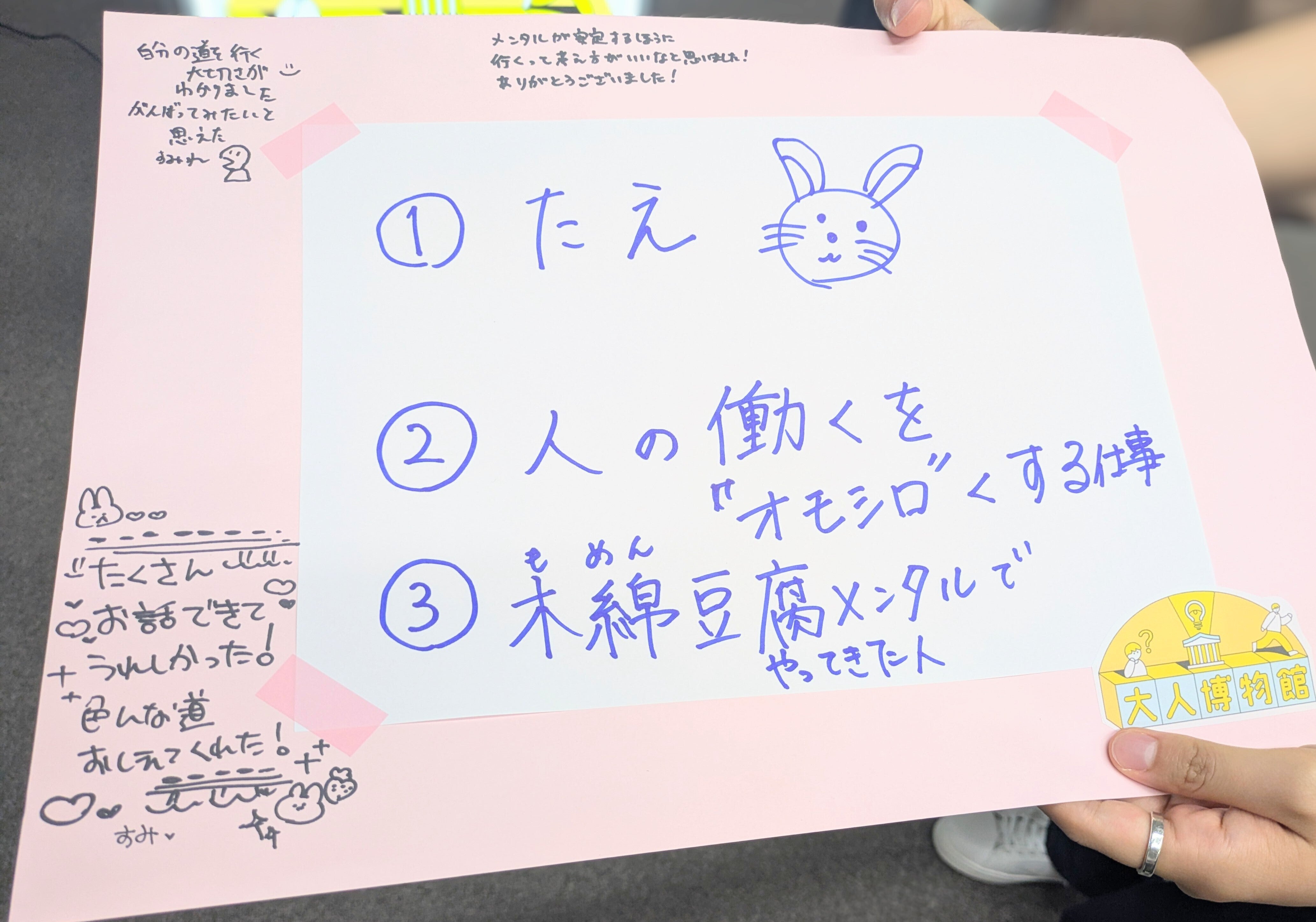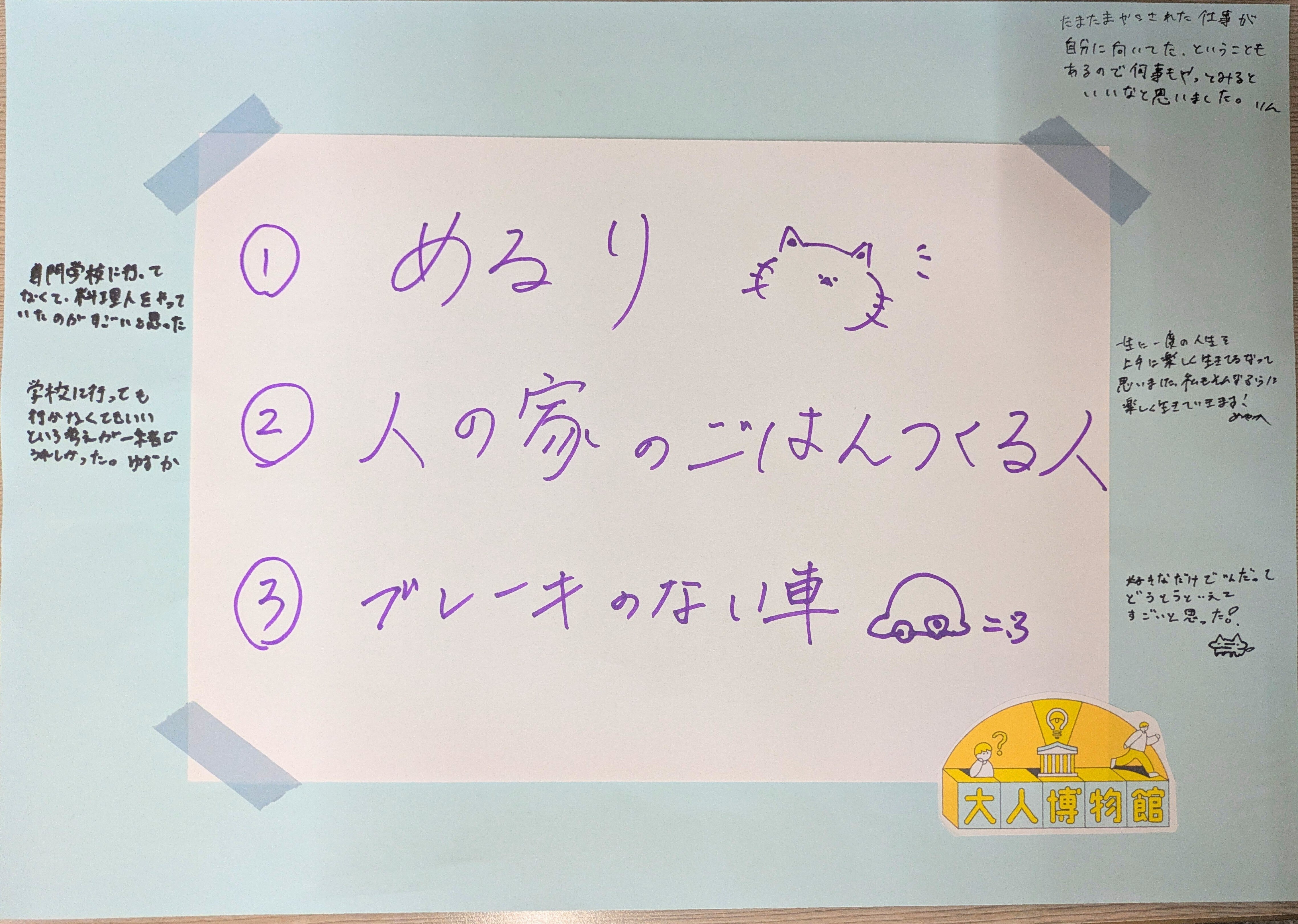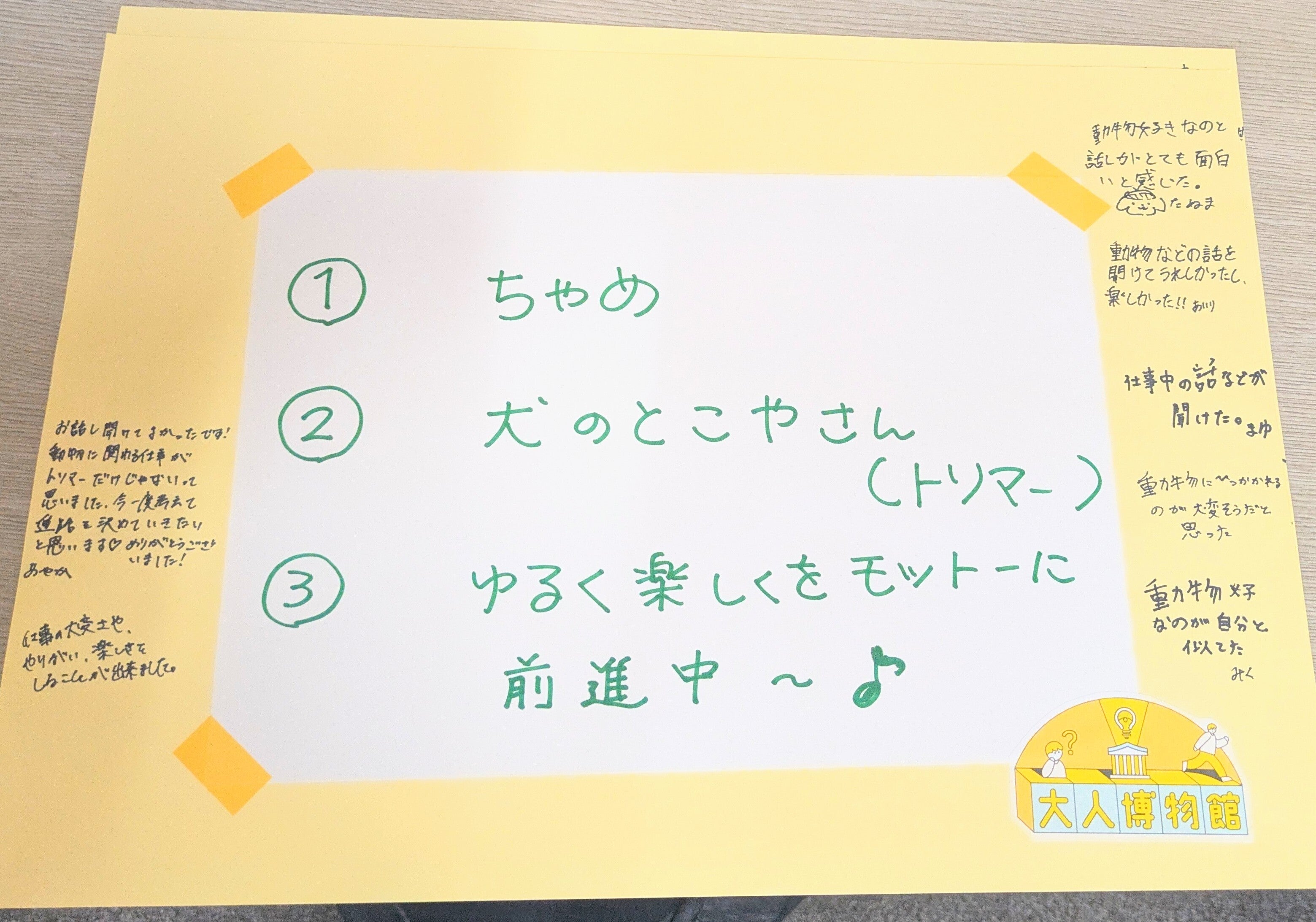 下の画像は、大人のプロフィールボードに子どもたち書いてくれた感想です。