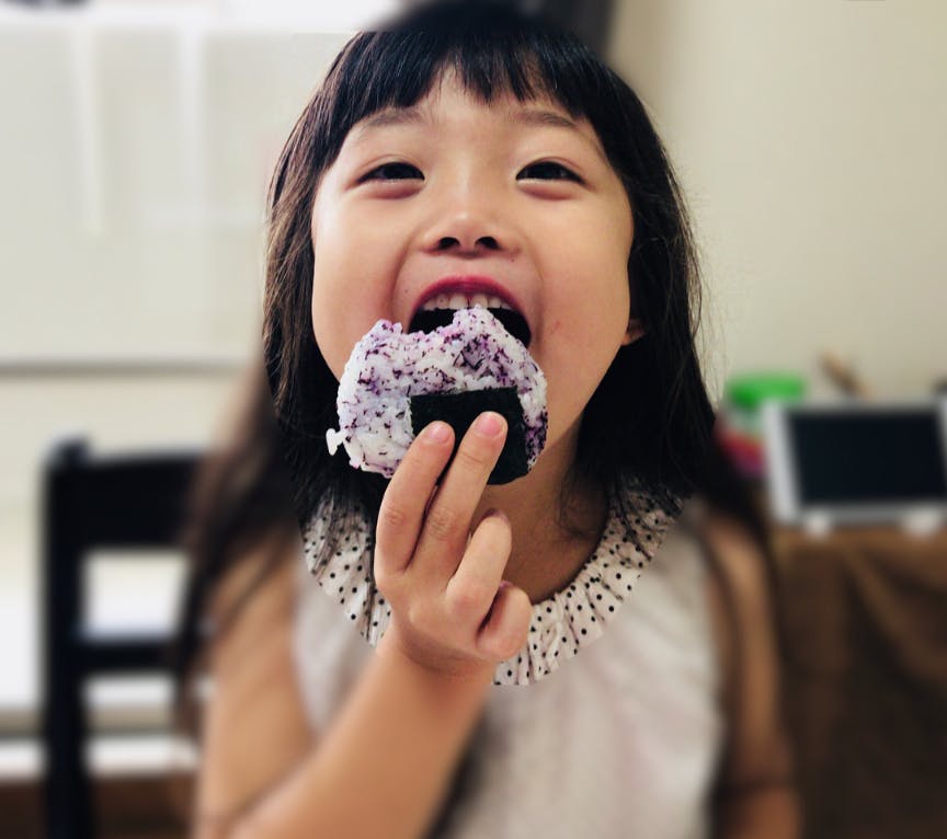 ・娘、一時退院の時の写真。大好きなゆかりおにぎりをほお張る姿