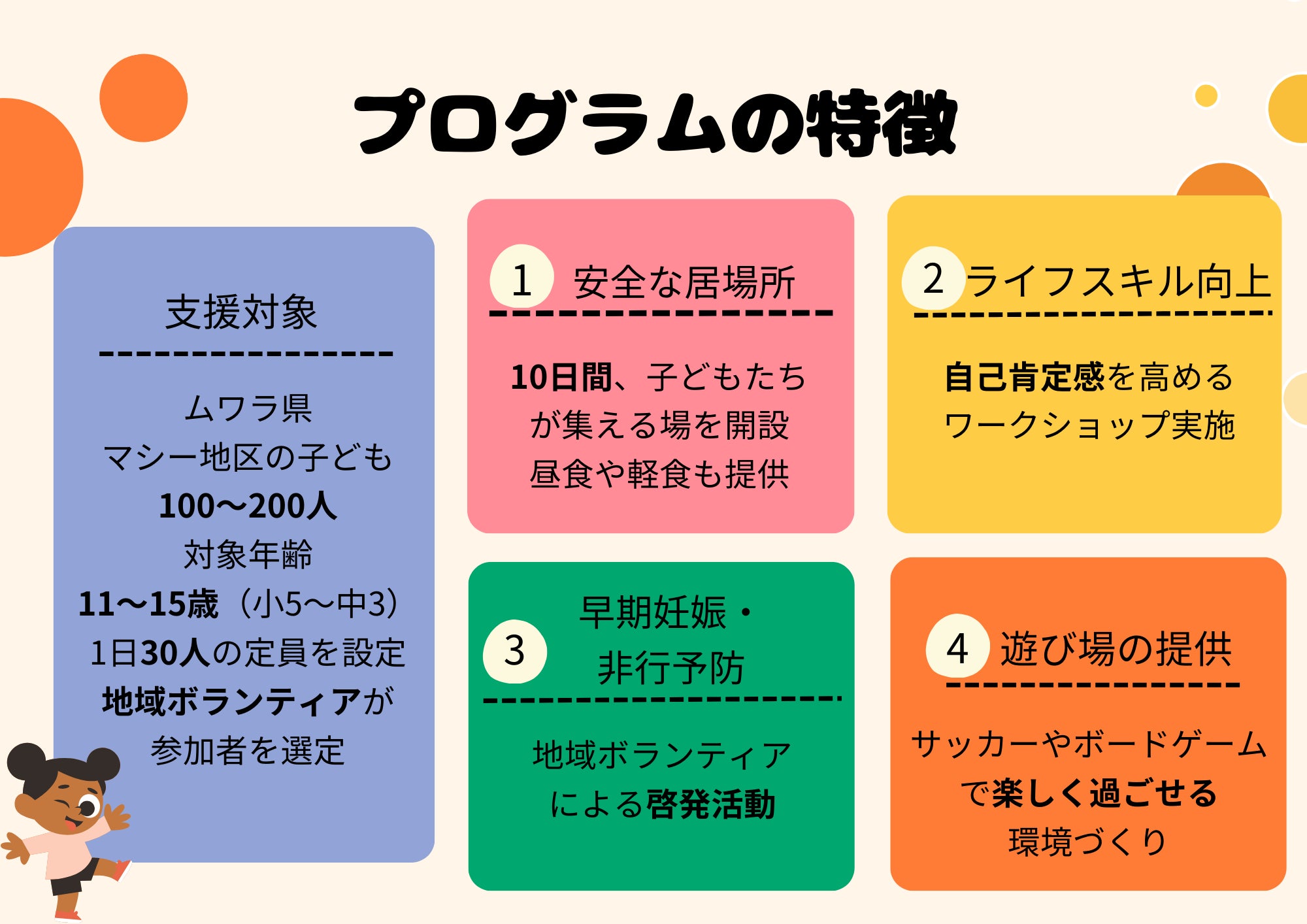 主な活動内容:遊び、ライフスキル教育、カウンセリングなど