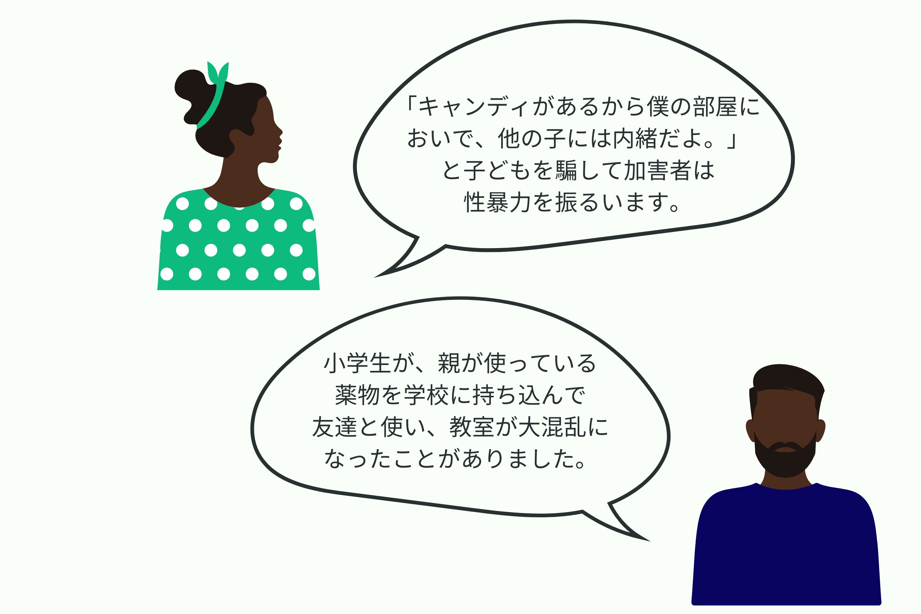特に長期休暇中は、学校にいるときに比べて家にいる時間が多くなります。そうすることで、親と一緒にいる時間が増えて暴力を受ける、出稼ぎで親がいない間に近所に住む叔父など加害者が家に入り込むなど、家庭内で虐待や性暴力を受ける可能性が高まります。