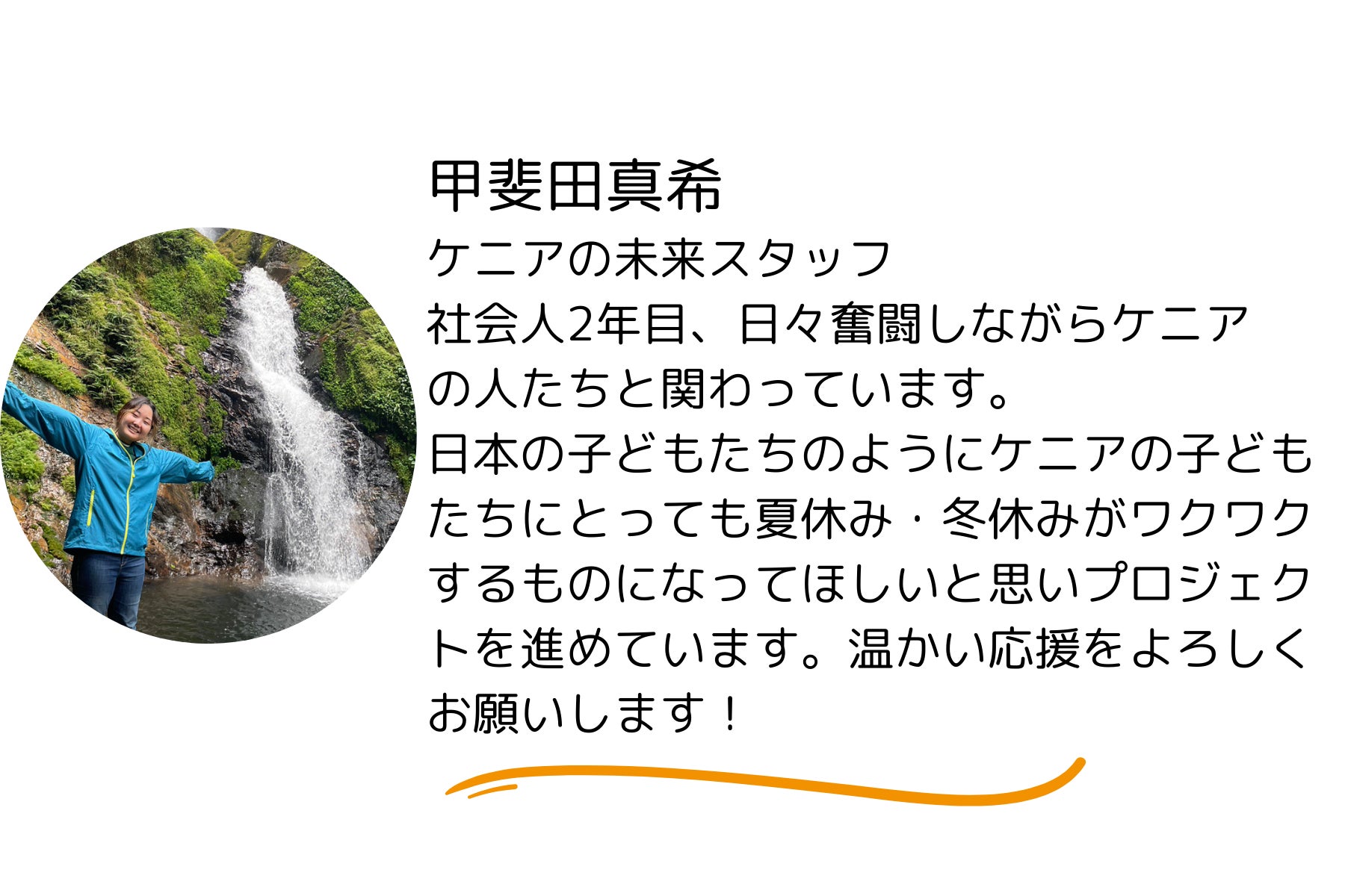 We are Mirai Future of Kenya. We are based in Machakos County, Kenya. In the rural area of Kenya, the risk of abuse and delinquency increases during school holidays. To address this, we are planning to launch "Nafasi project", means room in Swahili, providing a safe space for children. Through life skills education, counseling, and creational activities, we aim to prevent early child pregnancy and juvenile delinquency. Our goal is to raise 800,000 yen to support children in rural area. Your warm support can help protecting children and their future!