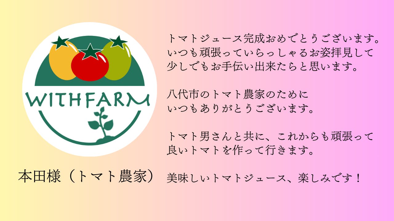 トマトジュースの製造をお願いした業者さんからも