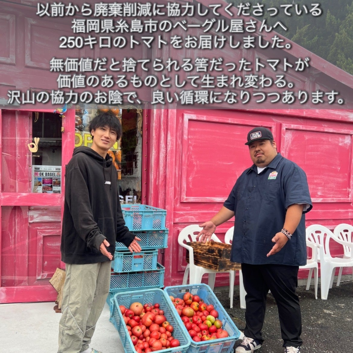 先日、福岡県糸島市へ規格外トマトをお届けして来ました。