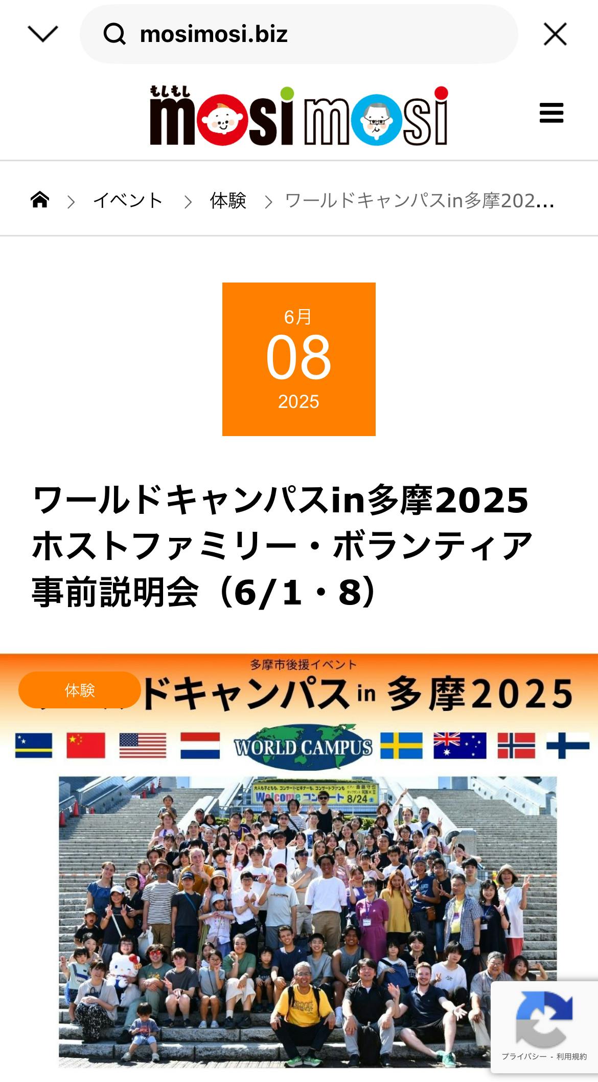 「ワールドキャンパスin多摩2025 ホストファミリー・ボランティア事前説明会(6/1・8)」の記事をアップしていただきました。