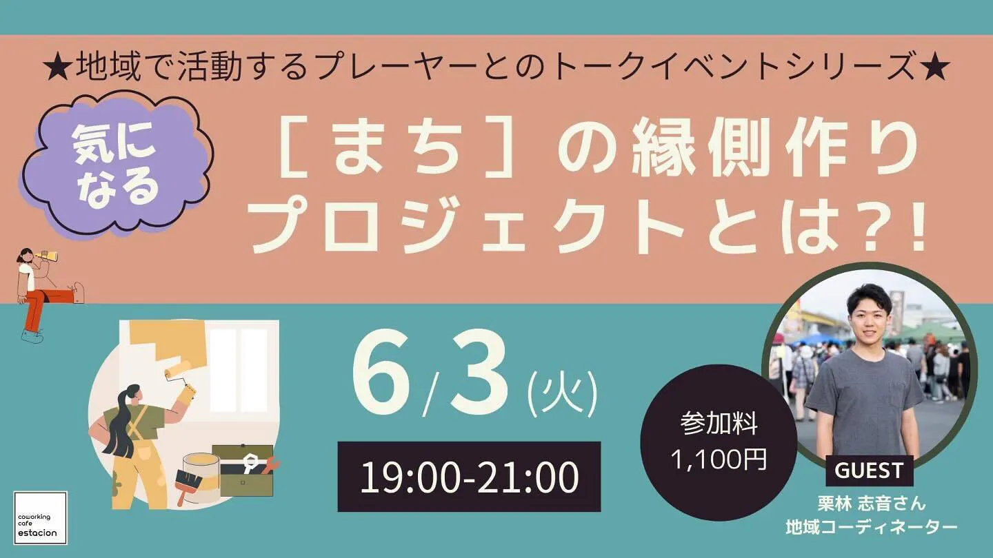 2025/05/27 20:31エスタシオンでトークイベント実施します!5/31土まで実施中のクラウドファンディングですが、終了後も変わらず、沢山のプロジェクトを実施できればと思っています!(目標達成に向けて、最後まで頑張ります!)その第一弾が、エスタシオンでのトークイベント!オーナーの野田さんとは、地域コミュニティの活性化について、去年から一緒にプロジェクトを進めていました!僕がなぜこのプロジェクトを始めたのか、思いやビジョンについてお伝えできればなと思っています!急遽決まったイベントですが、皆さんとお話ししながら、今後の住み開きの形について議論する場にもしていきたいと思っています!気になるという方はこの機会に是非!ご応募お待ちしております!⚫︎詳細はこちらからhttps://8estacion.jp/20250603event/⚫︎日時2025年6月3日(木)19:00〜21:00⚫︎開催場所コワーキングスペース&カフェ エスタシオン⚫︎参加費1100円(コワーキングスペース ドロップイン券付だからお得ですよ!) もっと見る