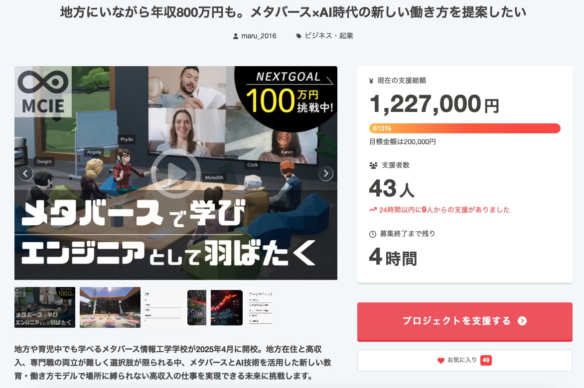 残り4時間!ラストスパートで急速に支援が増えています!