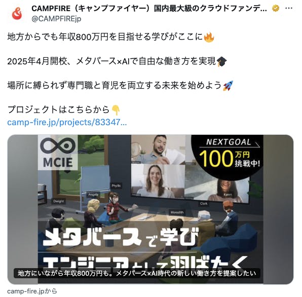 Campfire公式で、数少ない紹介プロジェクトに選ばれました。