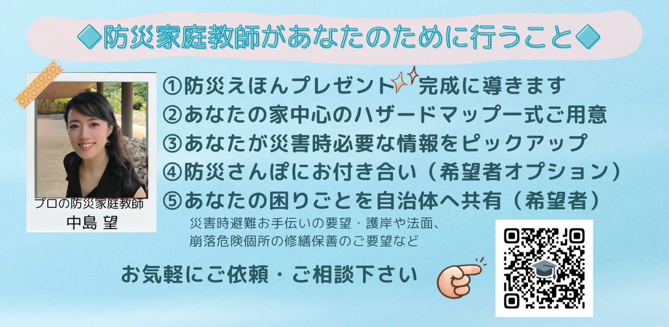 2024年秋には「おやこで作る防災えほん」を執筆し、オンリーone防災を立ち上げました。防災えほんの体験会や地域交流会などを通して、あなたにぴったりの“オンリーワン”防災を提唱しています。