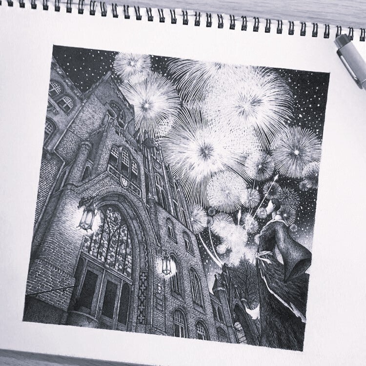 僕は黒いペン一本で、緻密なモノクロ画を描いています。