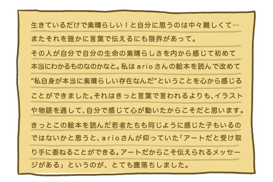 絵本を読んだ若者が、こんな感想をくれました。