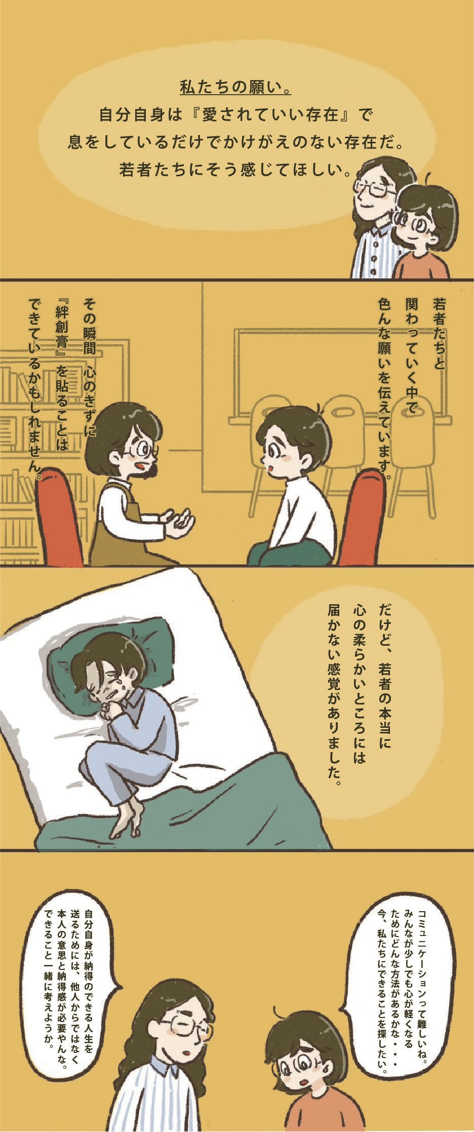その過程で、漫画を読んでいる若者も自分のペースで自身の状況や気持ちについて向き合い、心の整理ができると考えています。