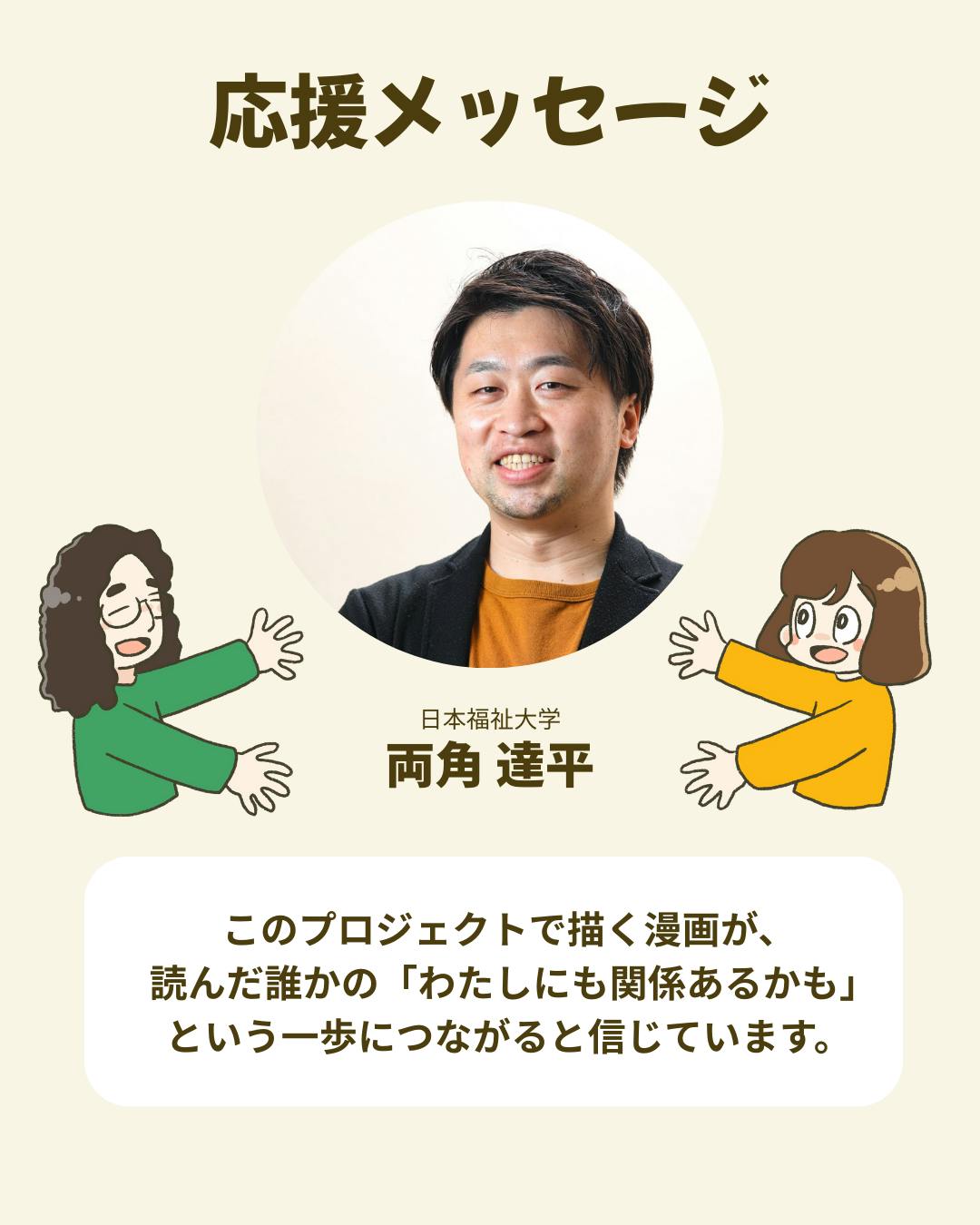 ユースワークとは、若者が自分の人生や生活に関する意思決定を行えるよう支える営み。そして、その営みは、物語ること=ナラティブを通して生まれる共感や気づきから始まります。このプロジェクトで描く漫画が、読んだ誰かの「わたしにも関係あるかも」という一歩につながると信じています。