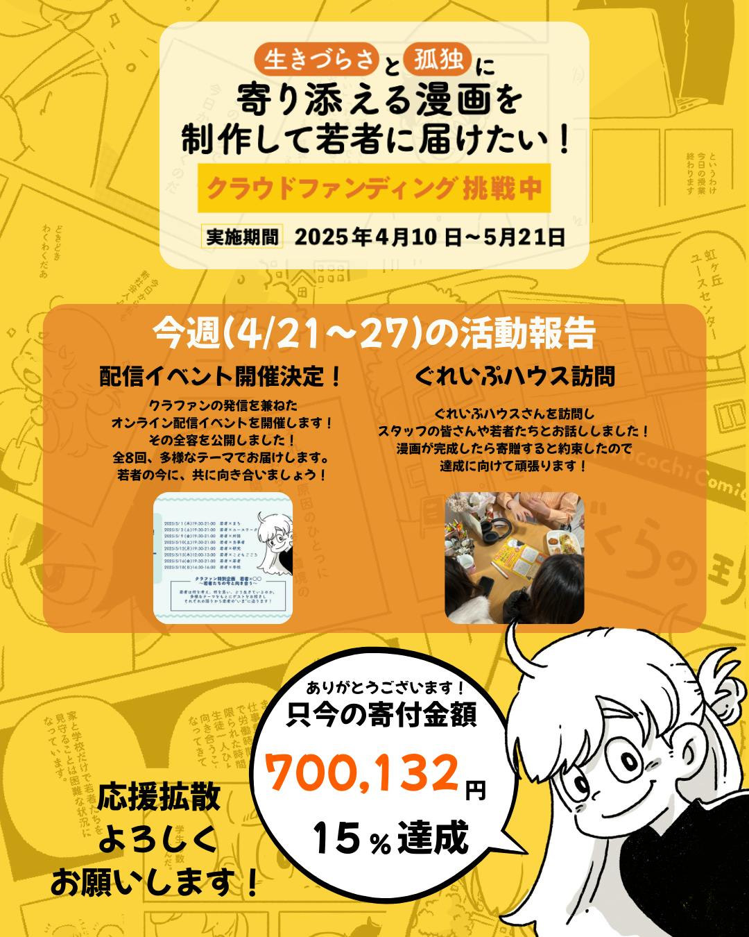 漫画が完成したら寄贈すると約束したので、達成に向けて頑張ります!