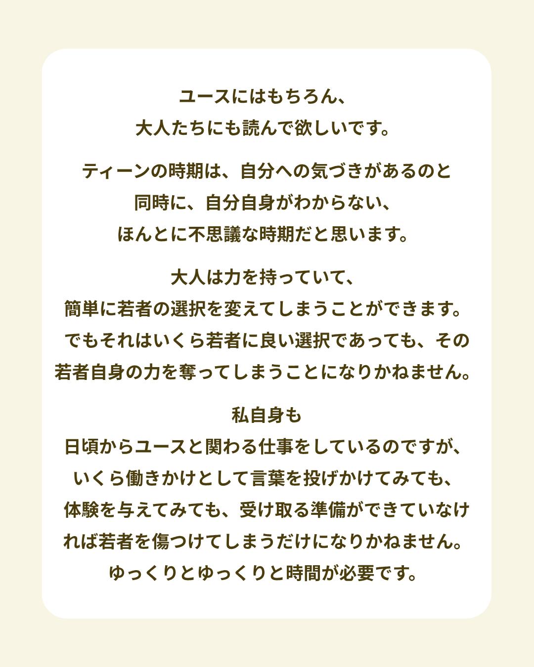 ユースにはもちろん、大人たちにも読んで欲しいです。