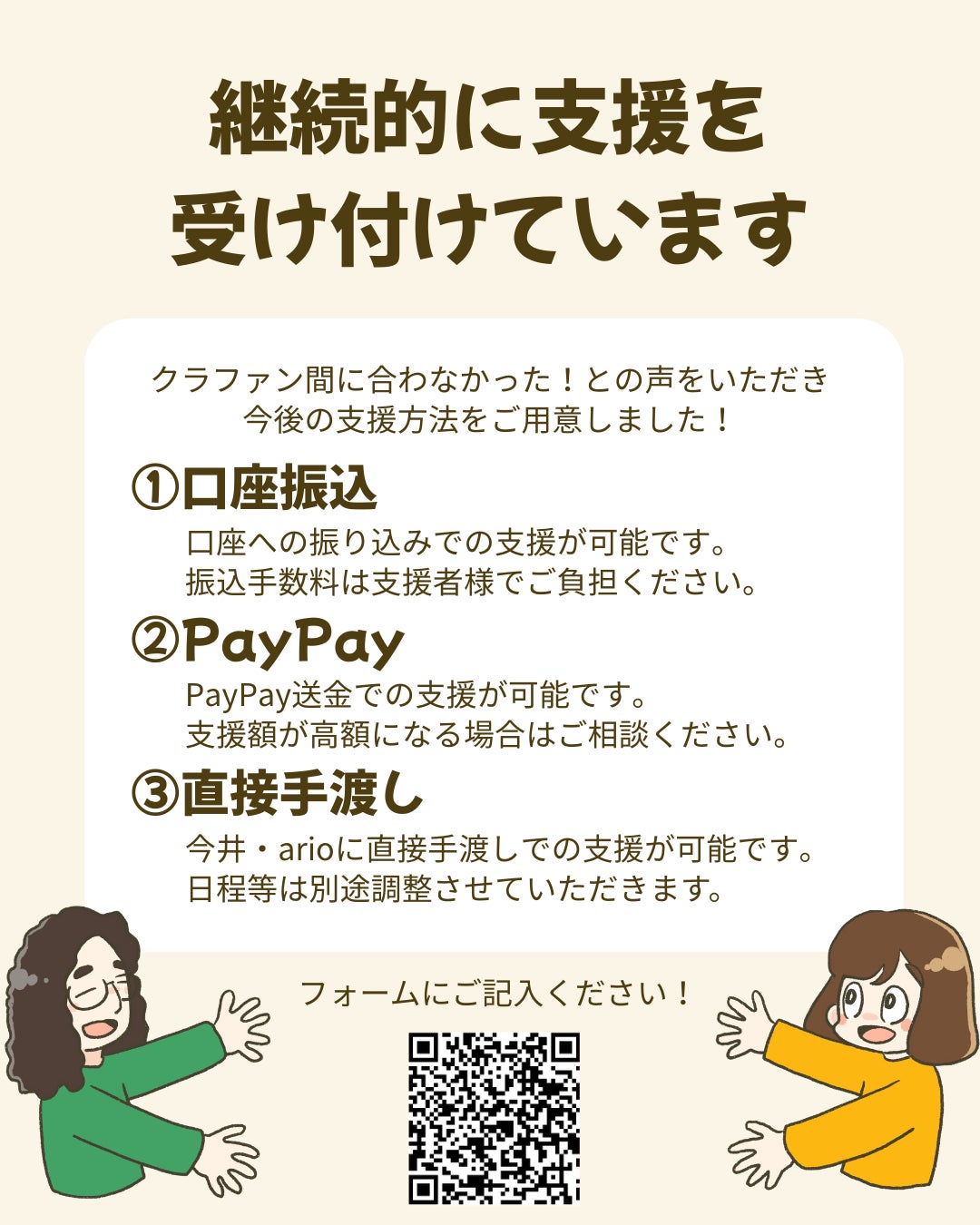 また、支援が間に合わなかった!とご連絡をいただきましたので、継続的な支援受付を実施することにしました。どうぞ、「クラウドファンディングに間に合わなかった!」と考えてくださっていたみなさま、ご支援をお願いいたします。