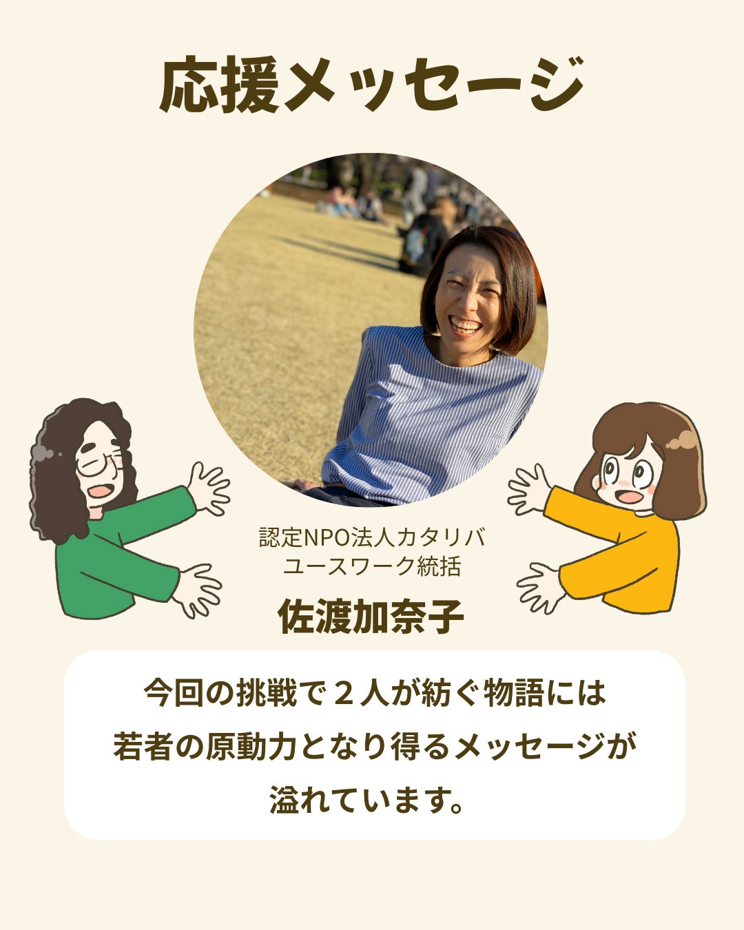 クラウドファンディングを通して、たくさんの応援の言葉を頂いております。私たちにとって本当に大きな支えになっています。【"生きづらさ”と”孤独”に寄り添える漫画を制作して、若者たちに届けたい!】クラウドファンディング挑戦中応援、拡散よろしくお願いします!ページはコチラからーーーーーーーーーーーーーーーーーーーーーーーーーーーー縁仁アドコム天﨑仁紹網を作るには、たくさんの糸が必要です。「居場所」ってなんなんでしょう?学校や部活から趣味のサークル、カフェなど、世間で居場所と呼ばれるものはたくさんありますが、それらは絶対的なものではありませんよね。些細なことひとつで失いかねない、不安定なものです。そんな中、これまでのしくじりを差し置いて「あなた」そのものを肯定してくれる誰かがいる……限られた経験値で奮闘する若い方々にとって、どれだけ心強いことでしょうか。このたび、ユースワーカーのarioさんと今井さんが取り組む活動は、若い方々の人生と丁寧に向き合い、それを漫画で届けるプロジェクト。そこには「安心して自分と向き合い、人生を歩んでほしい」というお二人のメッセージが込められています。そして、このメッセージに共感する人が増えれば増えるほど、一つの活動がしなやかなセーフティネットになってゆくのかもしれません。様々な人生、様々な悩みがあるからこそ、みんなでこの活動を支える意味があるのではないでしょうか?一冊の漫画が、若い方々を支える大きな網となりますように。