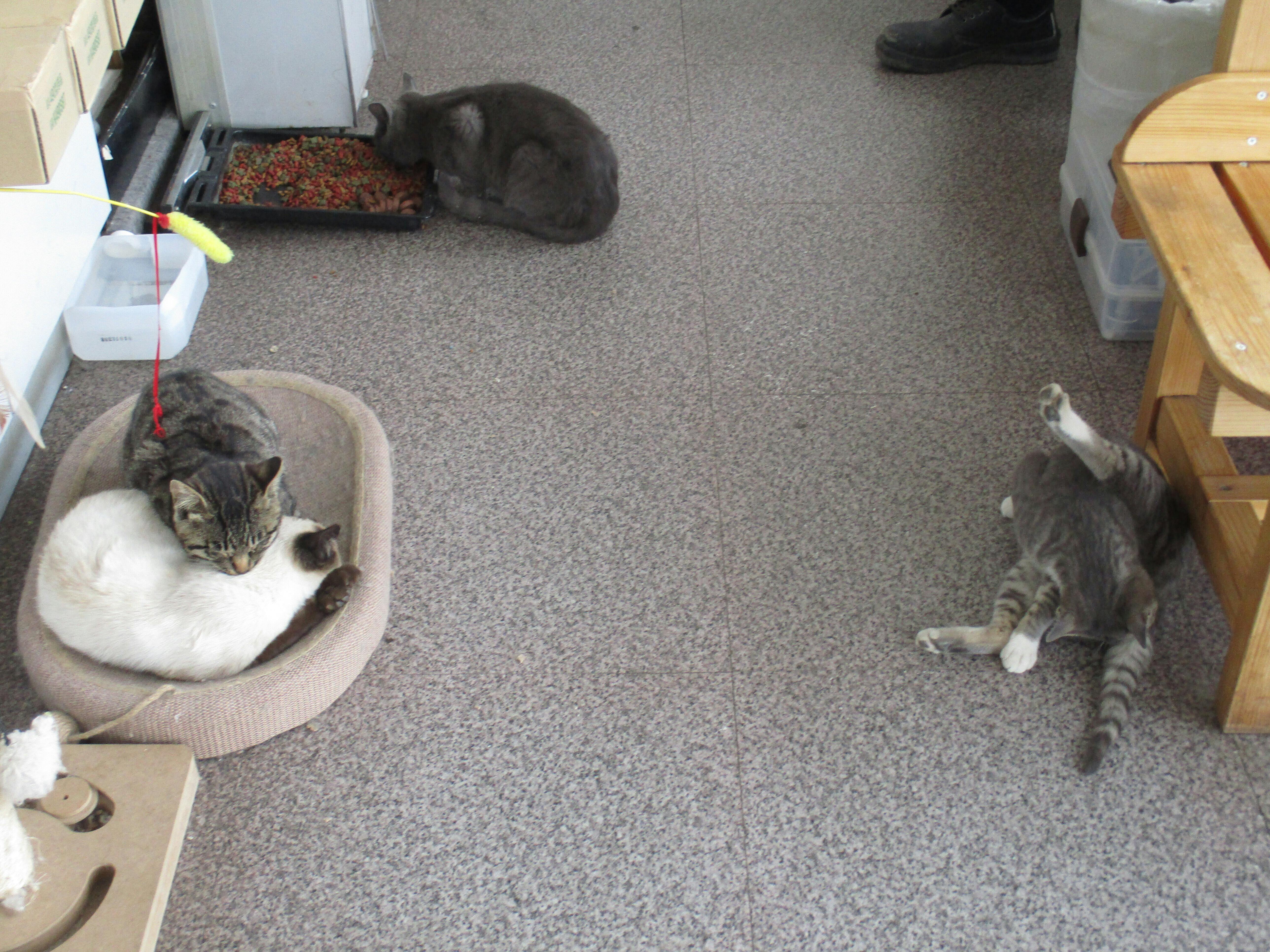 こんにちは!会社の保護猫はこの様に食べたり遊んだりしていました。無事5匹ともに島外の保護センターへ渡しました。フェリーで。今も野良猫の保護活動をしています。9月の保護、去勢、避妊、譲渡までを頑張ります!クラウドファンディングを実施しています、保護猫支援限定の御朱印を用意しました。来島記念では購入出来ません。猫を助けるのは今です、一緒に頑張りましょう!明上雅孝。