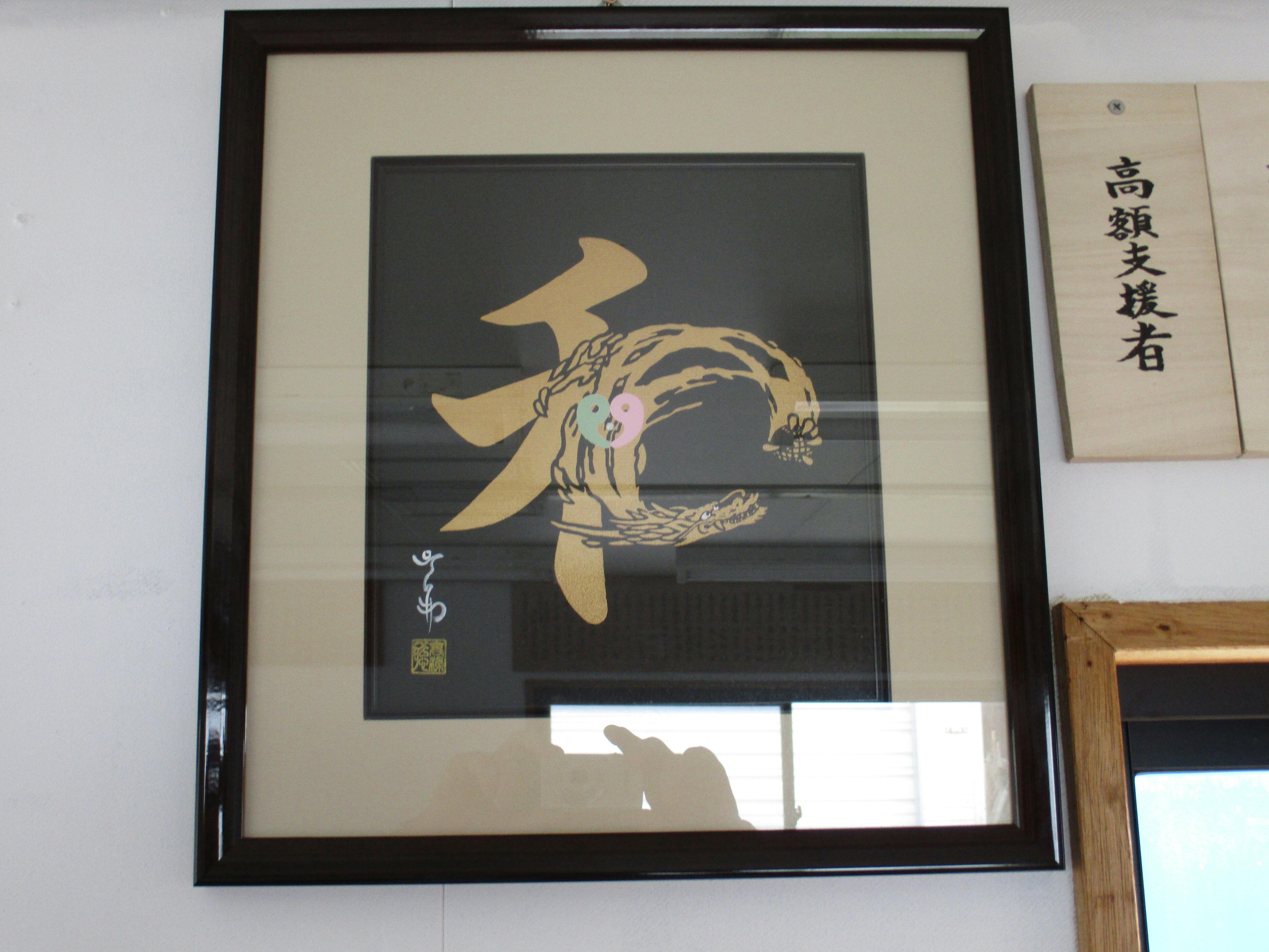 こんにちは!青苗は遺跡の勾玉が有名ですが正確な文献がなく登録できません。発掘調査から問題はありましたが、これは事代主神社に奉納された函館の画家の絵です。平和の和、勾玉も描かれています。今も後世に残すため支援金の5万円以上で希望者は都道府県、お名前の掲示をしています。10センチと20センチの板に。社務所内の掲示です。礼状と金粉の手帳型の事代主神社と宮津弁天宮の御朱印を別便で送付します。明上雅孝。090-5984-1384。