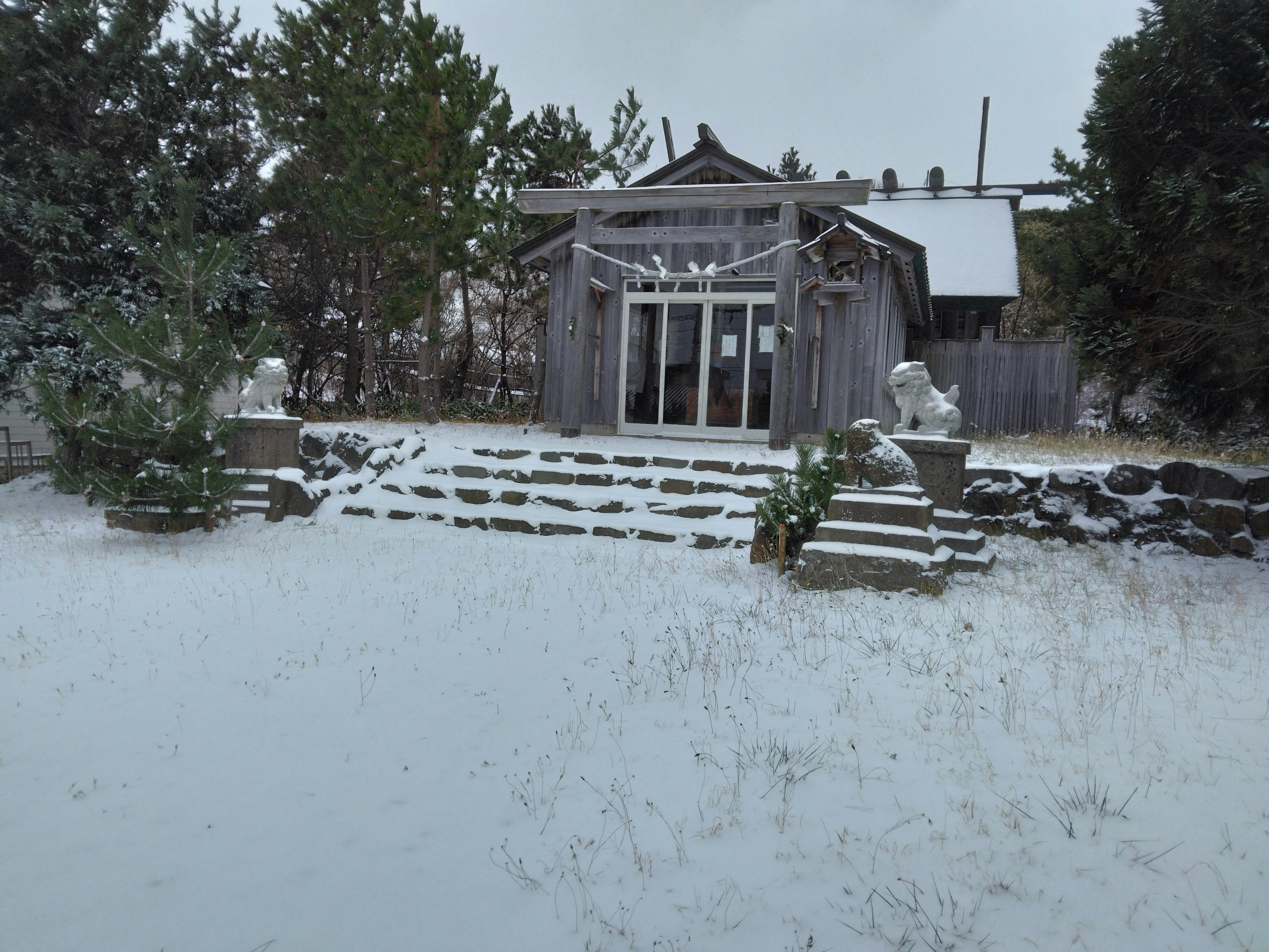 こんにちは!事代主神社も雪です、今年は少し多いです。平成7年の伊勢神宮の式年遷宮で資材1式を頂き青苗の事代主神社の名前になりました。建設から31年です。痛みも出ています。島の財産を後世に残すため日々奮闘しています。運営費で少し修理をしてます。トラは死んで皮を残します、私は死んで事代主神社を残します、力をお貸し下さい。明上雅孝。