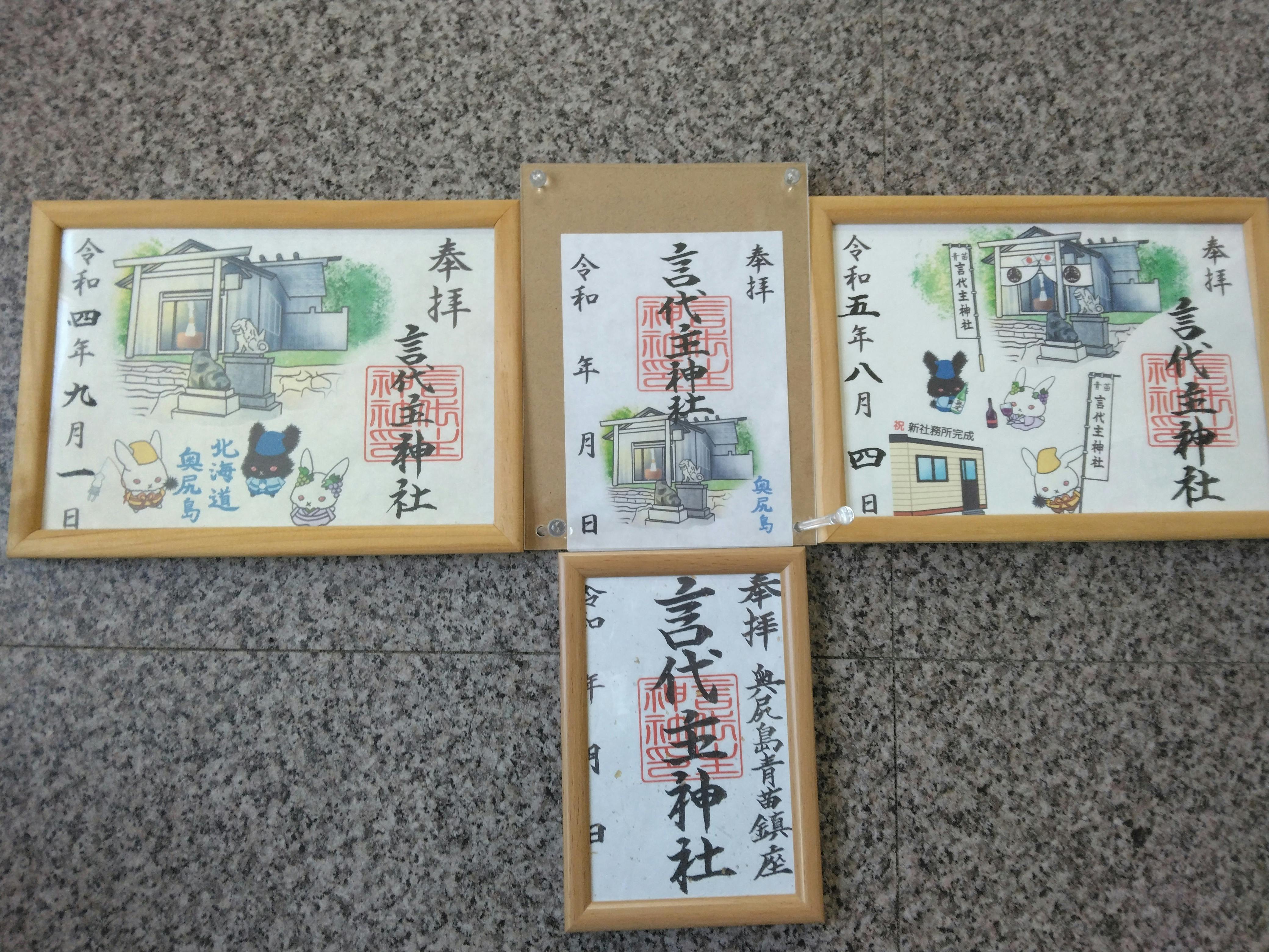 こんにちは!現在あります事代主神社の4種類の御朱印です。今は事代主神社の運営費を募集しています。備品の購入を目標にしています。国旗やちょうちんなどの購入を計画しています。春に向けての猫の去勢などまでの期間です。そこまでは私の役目です。御支援をお願いします!明上雅孝。