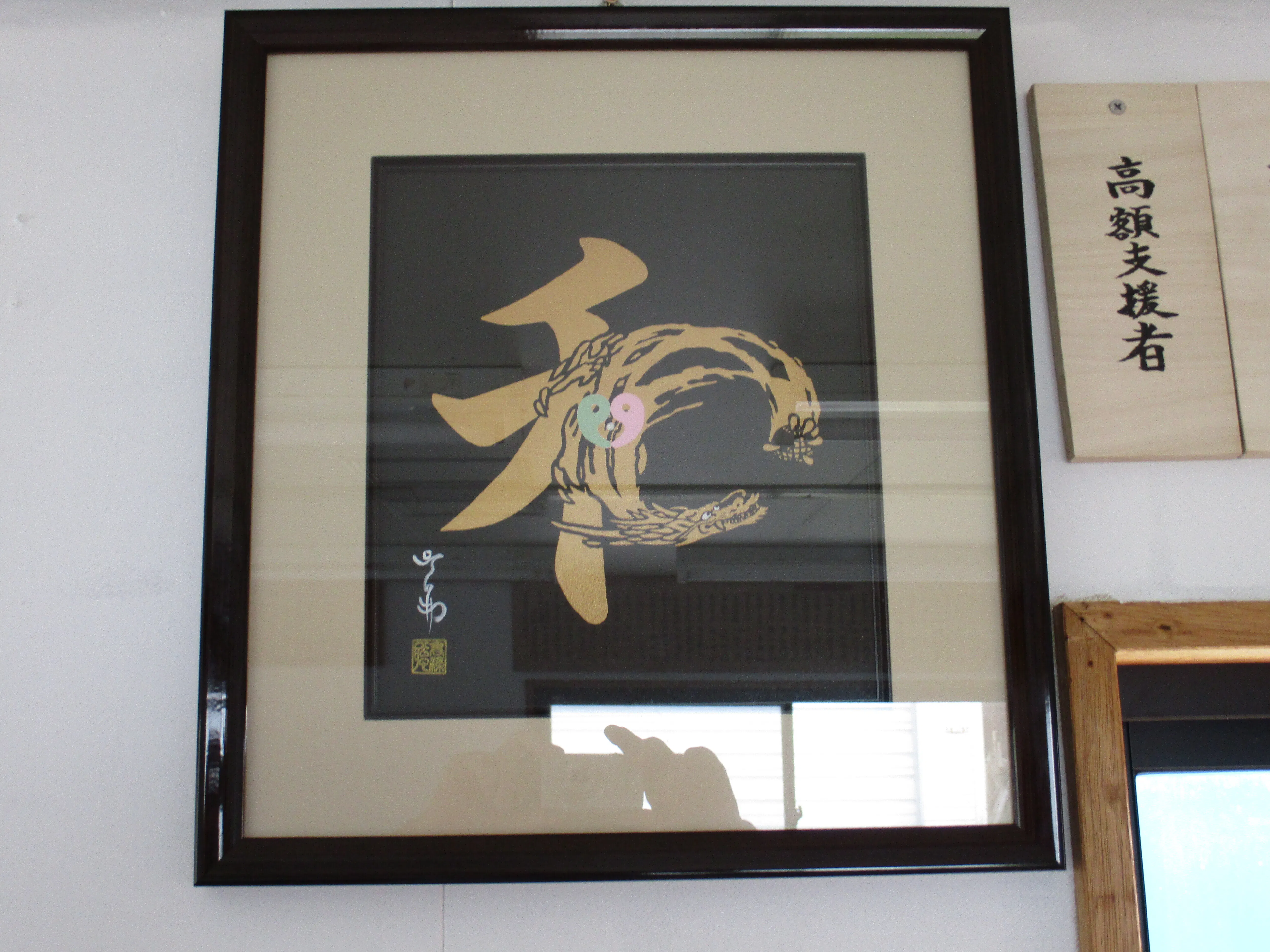 今晩は、青苗の事代主神社に奉納された函館の画家の絵です、平和の和、勾玉などが描かれています。今年は地元の有志から小型のジェットヒーターも奉納されました。祭事には役立ちました、感謝です。明上雅孝。