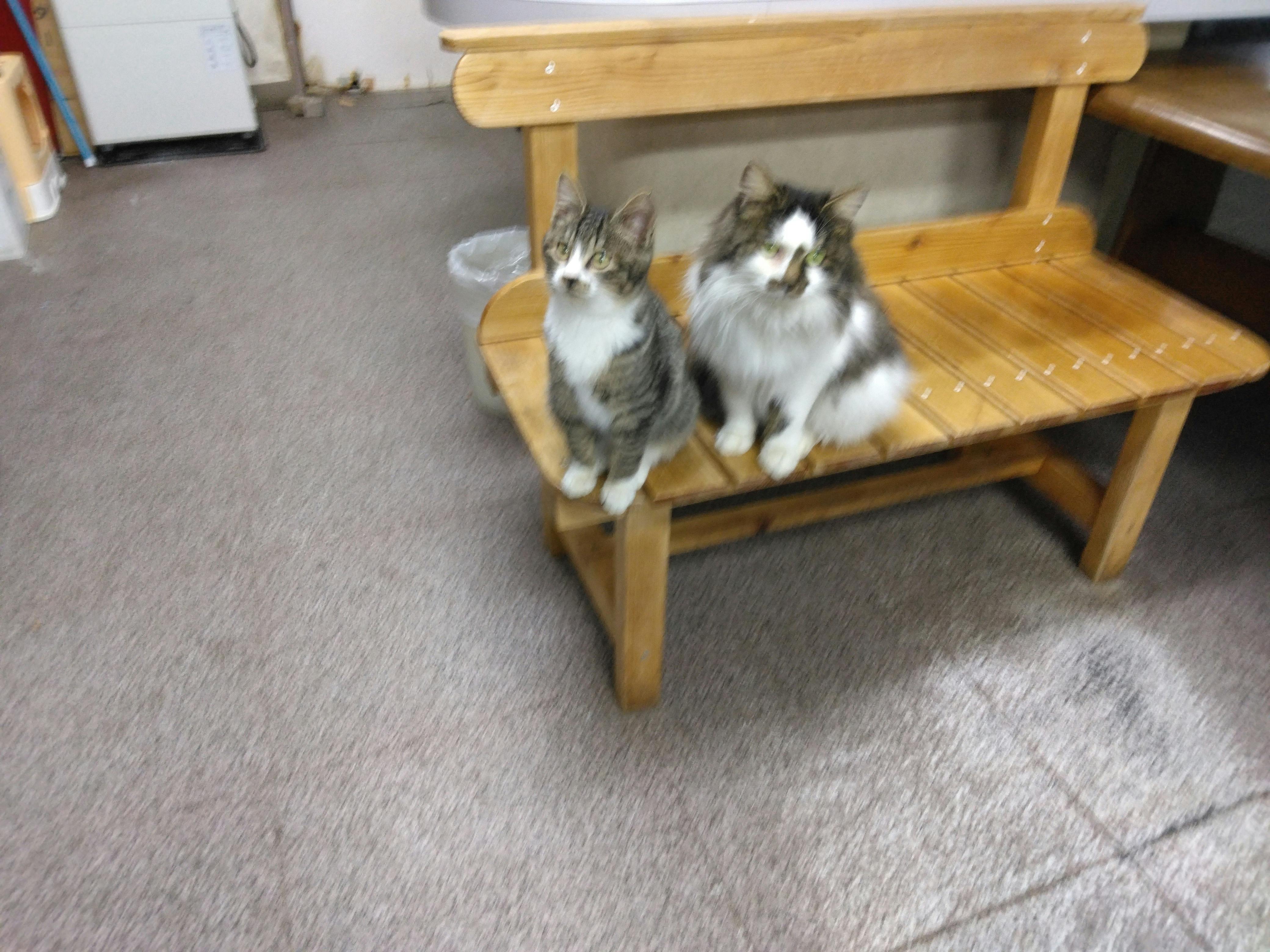 こんにちは!保護猫2匹が会社でテレビを見てます。画面とともに目を動かしています。島には熊や毒蛇はいませんが野良猫が多いです、この頃は狸とネズミは見えません。島に歴史を残すため事代主神社の入り口には案内板を取り付けました。道路からすぐ見えます。明上雅孝。
