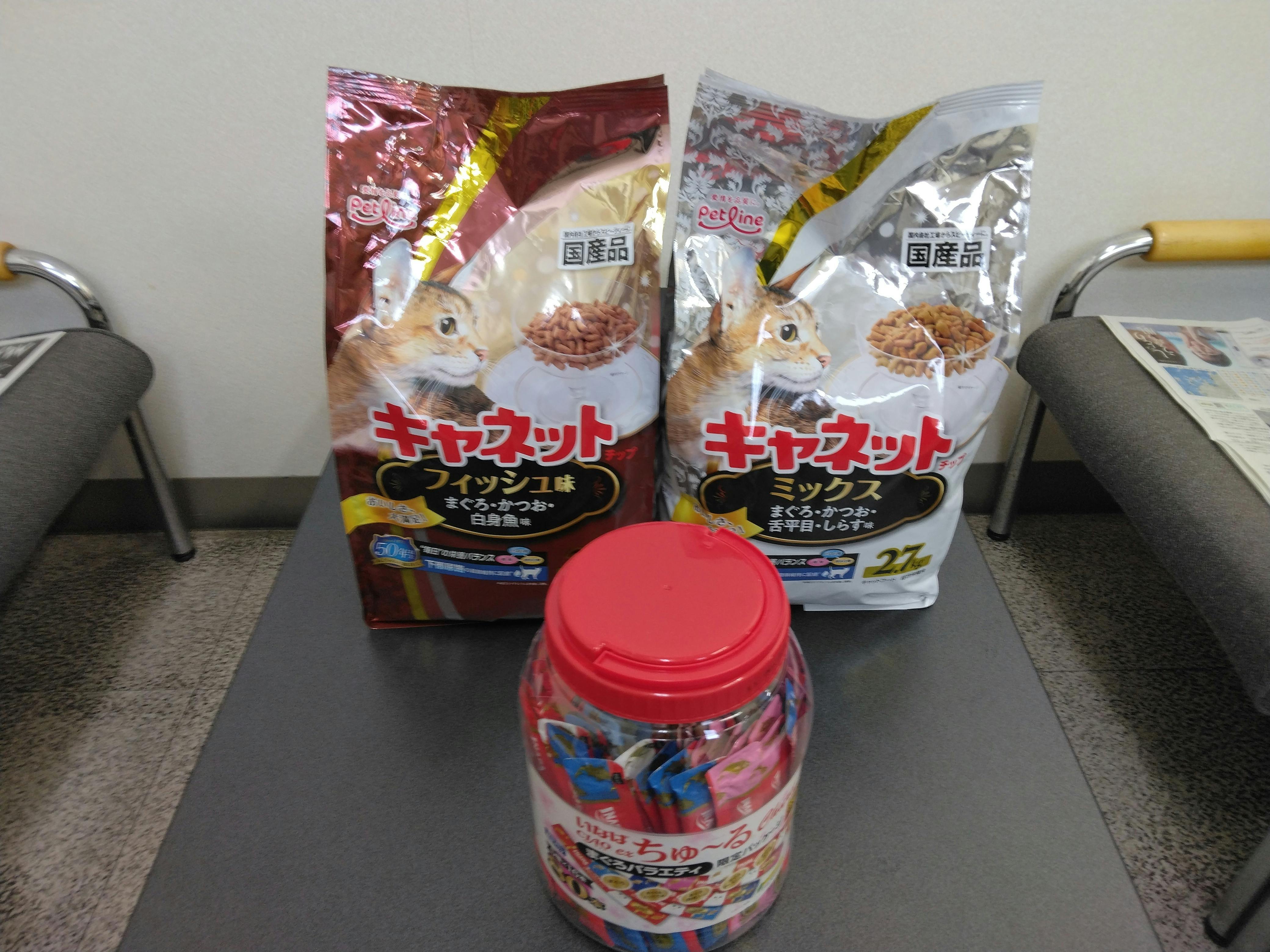こんにちは!有志に届けていますエサの2,7キロとチュールです、色違いもありますが島で野良猫の保護活動をしています。19日から25日まで島で野良猫を保護、去勢などを実施予定です、やっとここまで頑張ってきました、あと一息助けてください。希望は捨てません、支援金の募集しています後44万で22匹を助けたく力をお貸し下さい。31日まで支援金の募集しています、口座振り込みですが御支援をお願いします。明上雅孝。090-5984-1384。