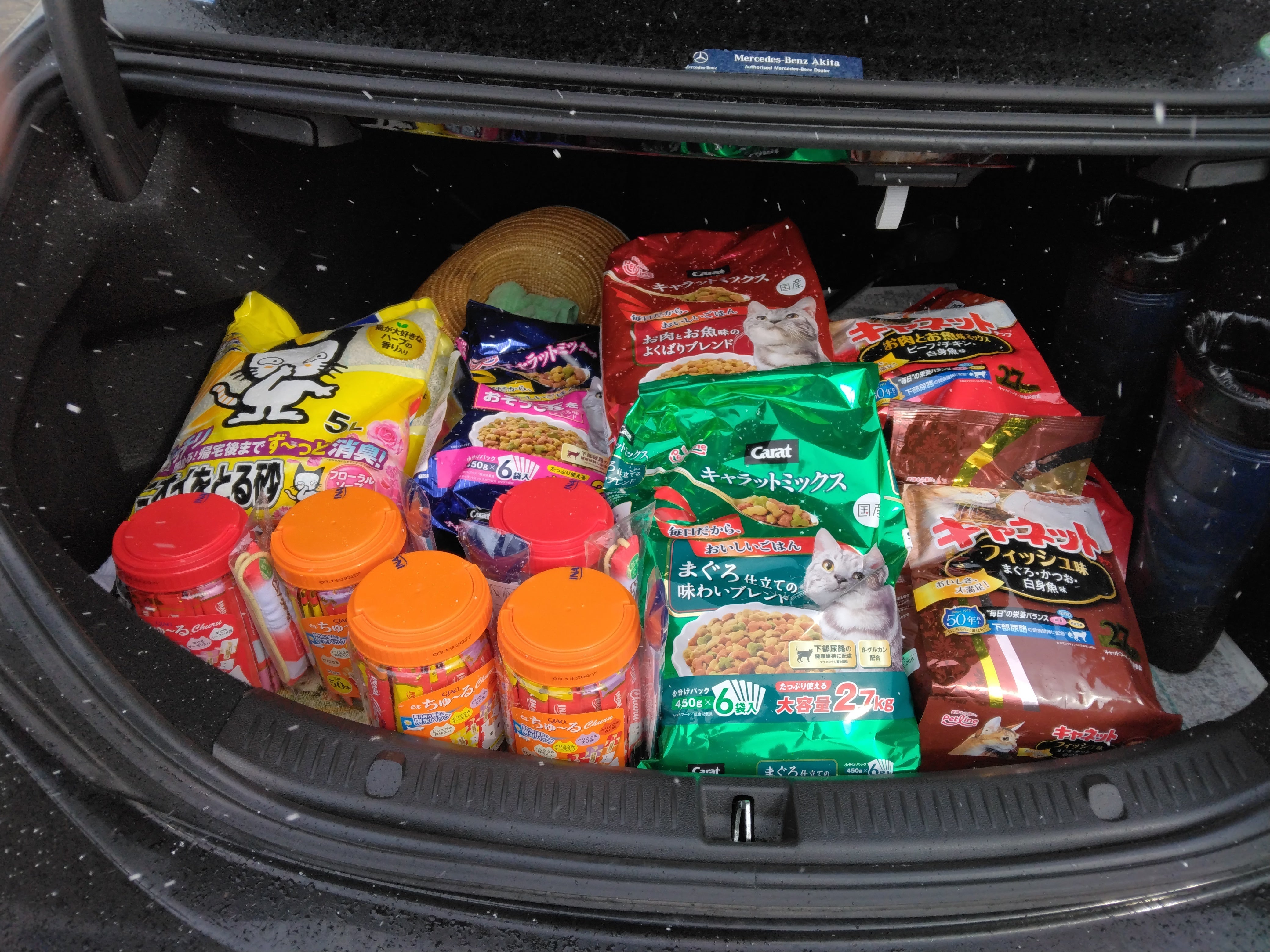 こんにちは!支援者に感謝です。昨日ヤマト便で猫のえさとおやつが届きました、エサは3,5キロ4袋です、おやつは3袋です。イトーヨーカドーでした。有志に配達します。地域猫も70匹いますので大変に助かります、栃木県の青木様、本当にありがとうございました。感謝です。76歳の老体にむち打ちながら最後まで頑張ります!明上雅孝。090-5984-1384。