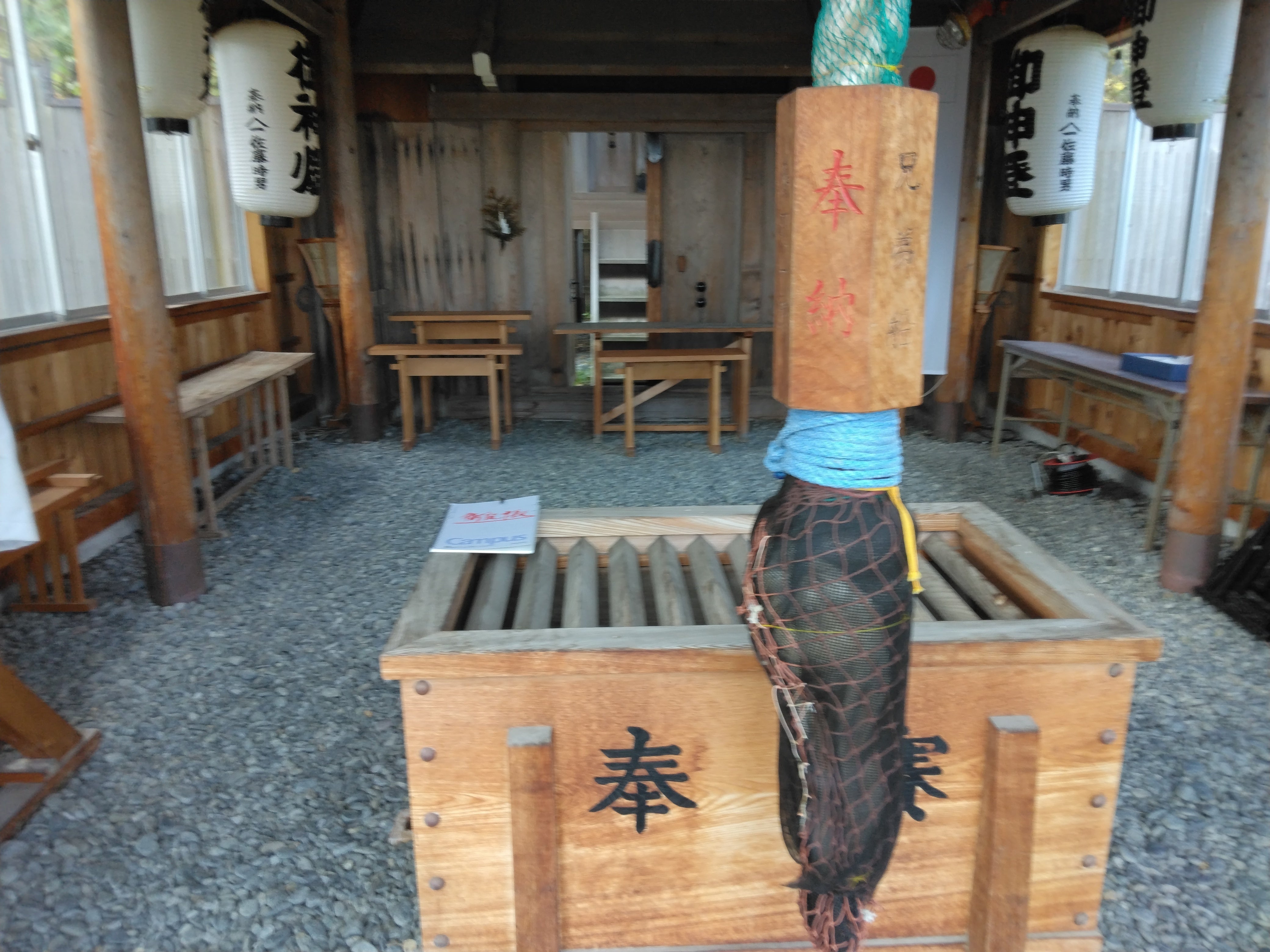 こんにちは!青苗の事代主神社の鈴は平成8年に歌手の鳥羽一郎さんの奉納です、奉納、兄弟船、鳥羽一郎と刻まれています。取り付けから30年も過ぎ有志で修理をしました。ボロボロの糸が落ちましたので。昨年も参拝者も多くお賽銭も多くあり運営費が助かりました。これからの運営も厳しいですが最後まで頑張ります!明上雅孝。