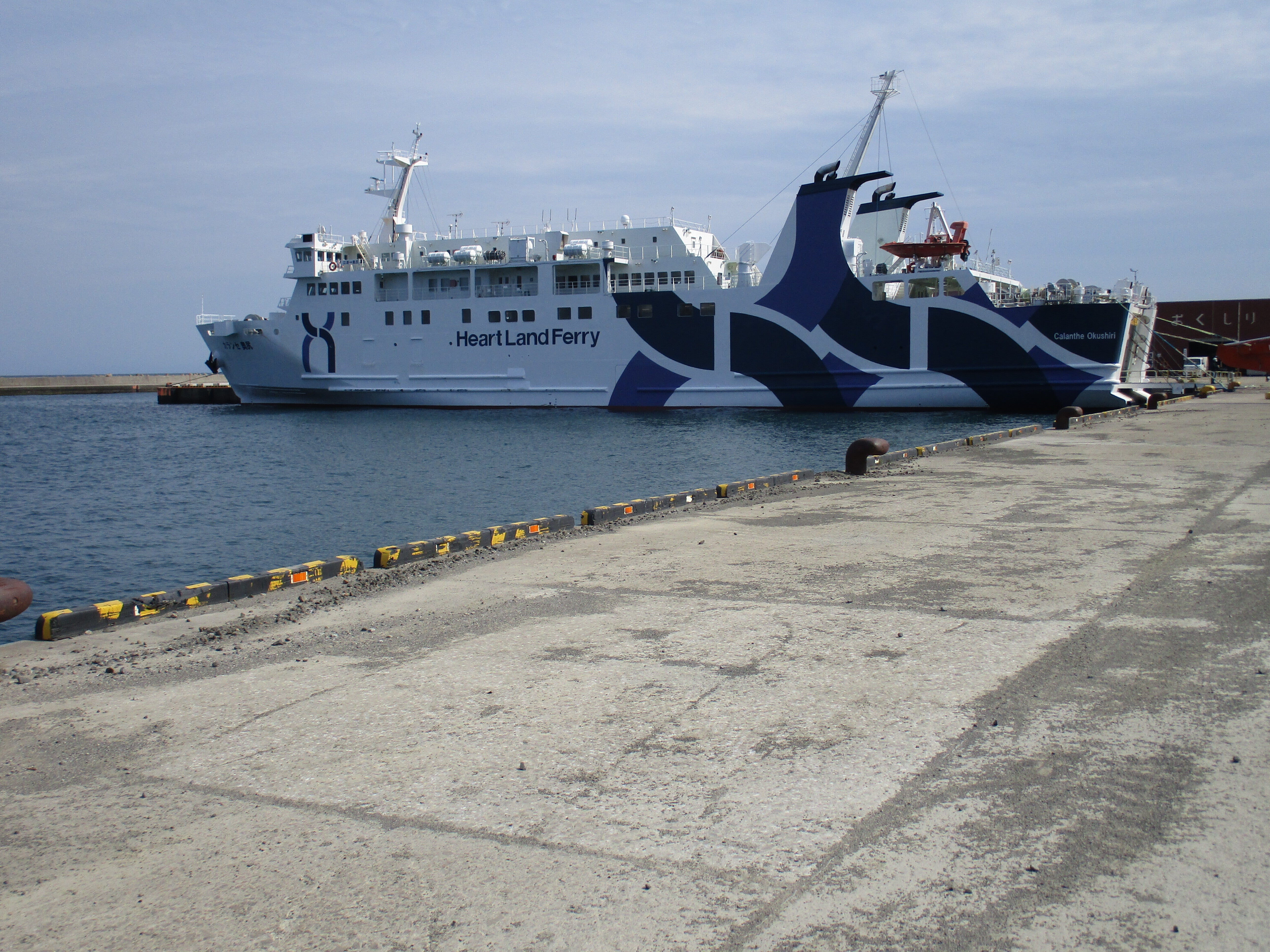 こんにちは!島と江差港を結ぶ1日1便のフェリーです。3600トンで車は40台積めます。予約が必要です。61キロを130分から140分で走ります。今は代わりのフェリーが走っています、ドック入りです。ホテルが建設後でもフェリーの1便では観光は難しいです。明上雅孝。