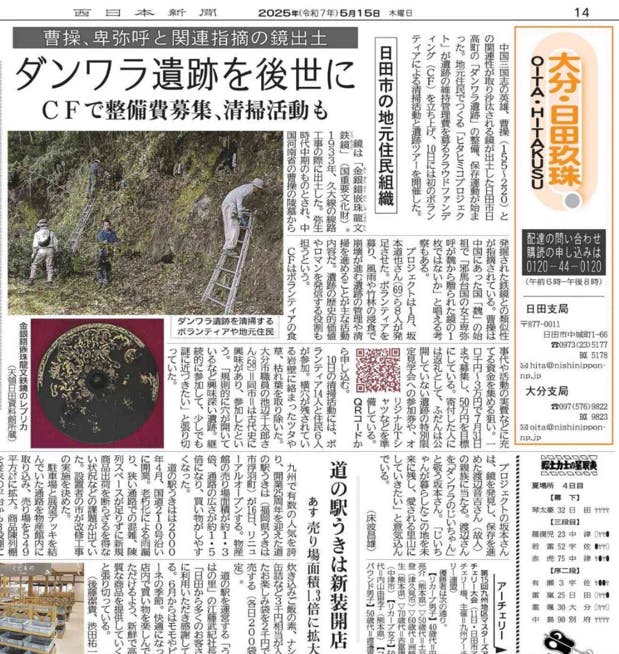 長年、竹林と泥に埋もれていたその姿が、少しずつ蘇っていく光景は、胸を打つものでした。この取り組みは、大分合同新聞、西日本新聞、KCVコミュニケーションズなどのメディアにも取り上げられ、多くの方々に「ダンワラの再発見」を知っていただくきっかけとなりました。
