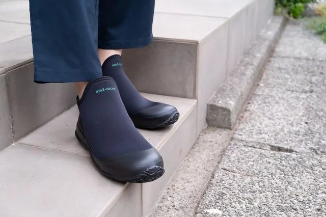 and・moreはコアなファンを世界中に増やし「この1足で完結」する防水シューズを目指しています。